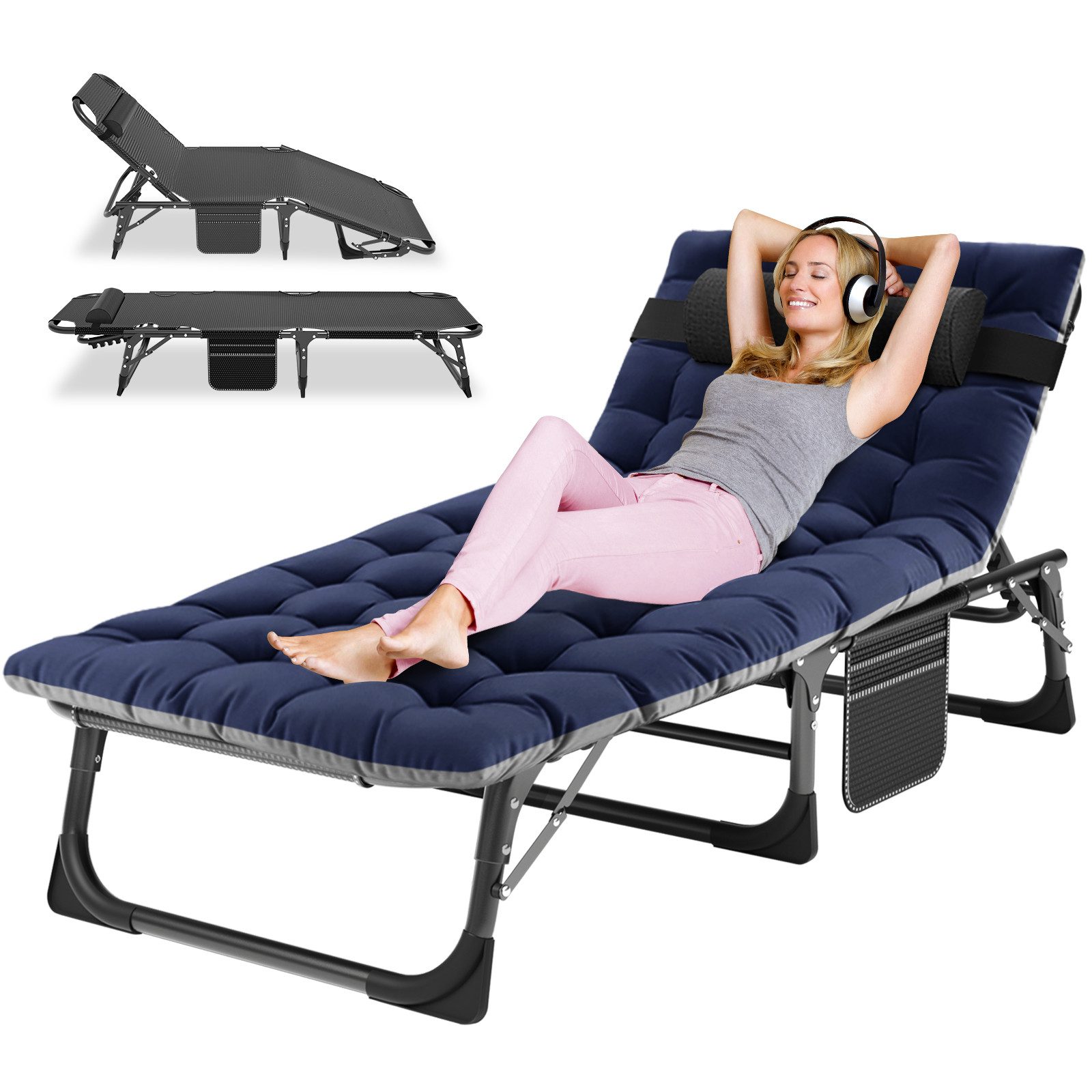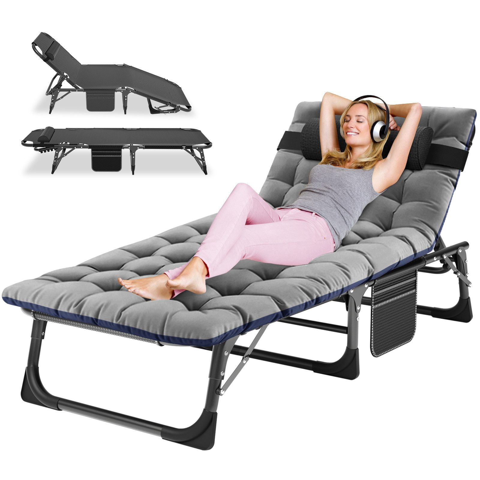 Das 5-stufige Rückenlehnen-System mit präziser Rastmechanik ermöglicht flexible Einstellungen von flacher Liegeposition bis zur aufrechten Sitzhaltung – perfekt für Sonnenbaden, Lesen oder Mittagsschlaf im Freien.