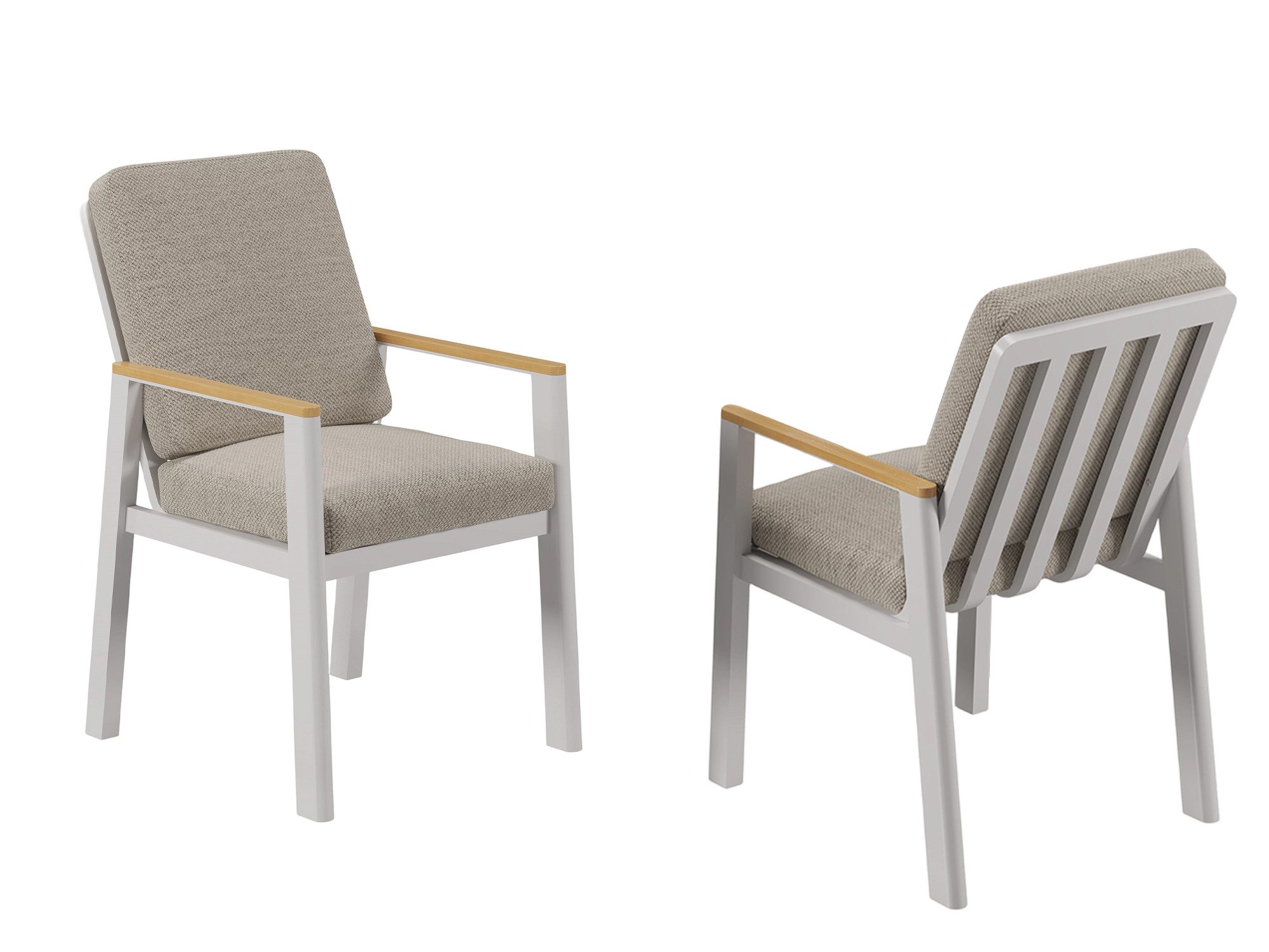 Bringen Sie moderne Eleganz in Ihren Außenbereich mit dem MeXo Gartenstuhl-Set im 2er-Pack. Die Kombination aus wetterfestem Aluminiumrahmen und stilvollen Polywood-Armlehnen in Holzoptik sorgt für ein harmonisches, zeitloses Erscheinungsbild.