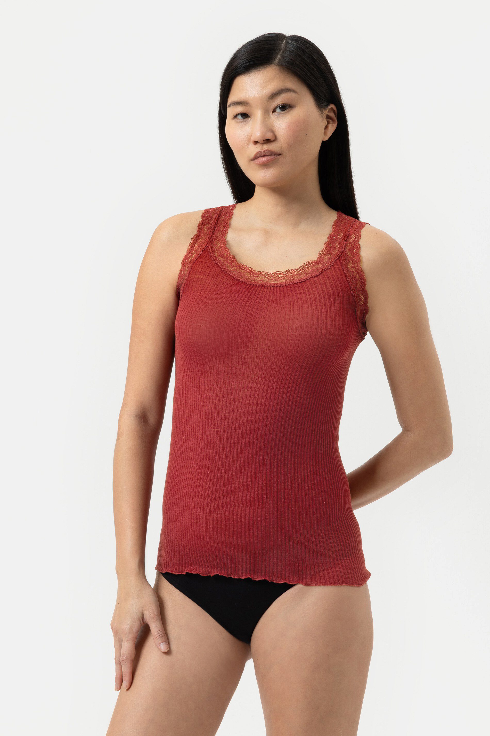Besondere Merkmale | Top mit femininer Spitze, Wolle-Seiden-Mix, Feinripp, Rollsaum |