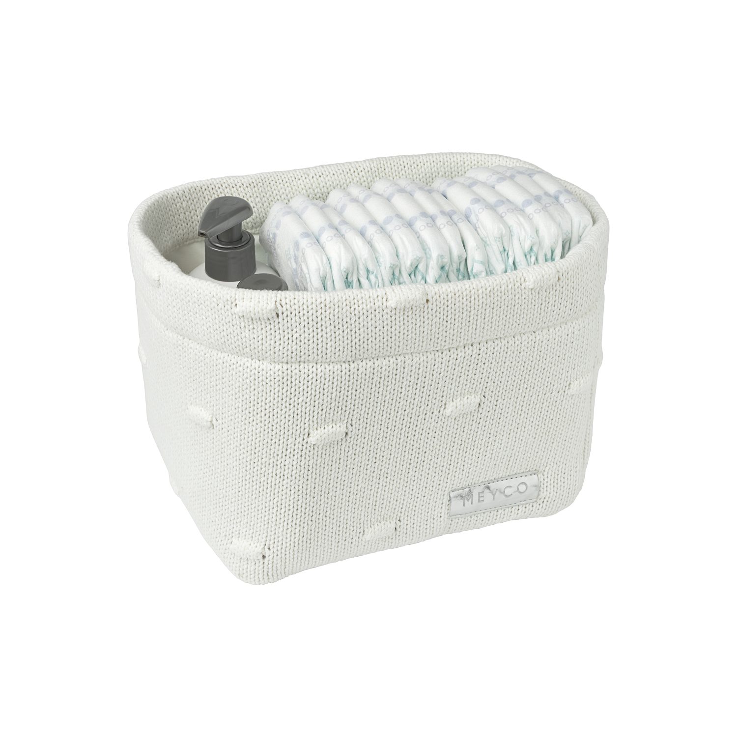 Dieses gestrickte Meyco Baby Wickeltischkörbchen Knots sieht nicht nur schön aus, sondern ist auch sehr praktisch im Babyzimmer. Stelle es neben oder auf die Kommode und bewahre alle Pflegeprodukte (oder Spielzeuge) darin auf. So bleibt alles übersichtlich und griffbereit. Praktisch! Die erhabenen, gestrickten Knoten verleihen dem Korb einen etwas verspielteren Effekt.