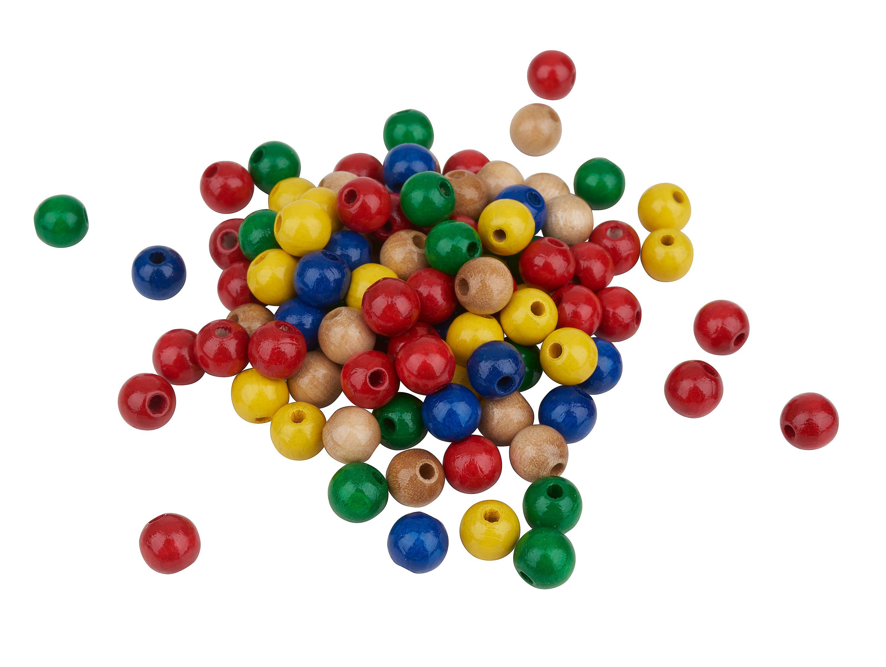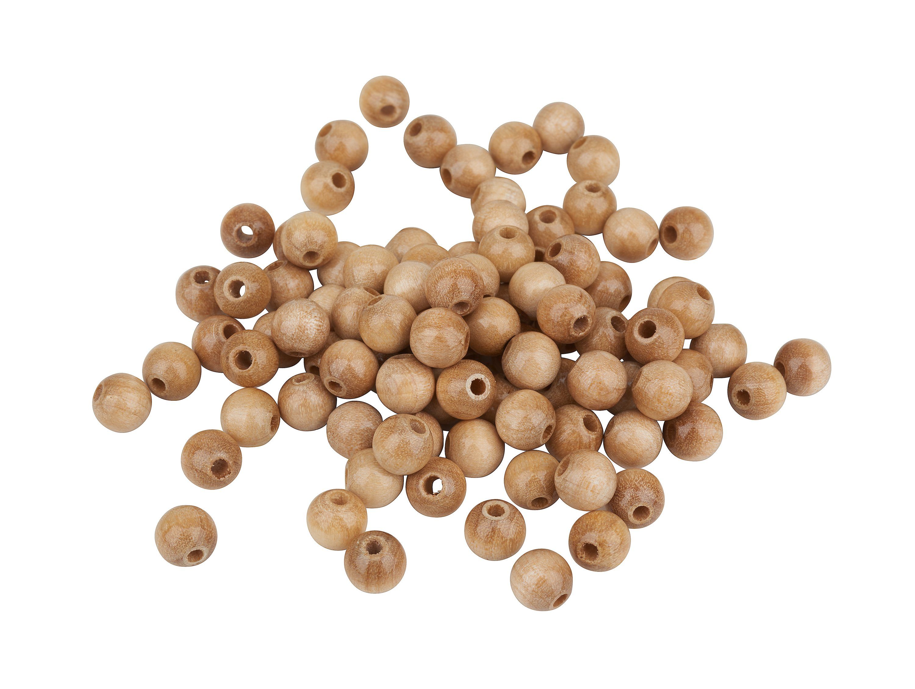 Diese Holzperlen haben einen Ø von 8 mm, mit einer Bohrung von ca. 2 mm. Sie erhalten 85 Stück speichelechte Perlen. Das Material ist Buchenholz mit einem glänzenden Lack gefärbt. Ein wundervoller Bastelartikel mit einer großen Vielfalt an Anwendungsmöglichkeiten. Gestalten Sie eine Kette, verzieren Sie Wohnaccessoires und Geschenke oder basteln Sie hübsche Schlüsselanhänger, witzige Raupen und coole Armbänder.