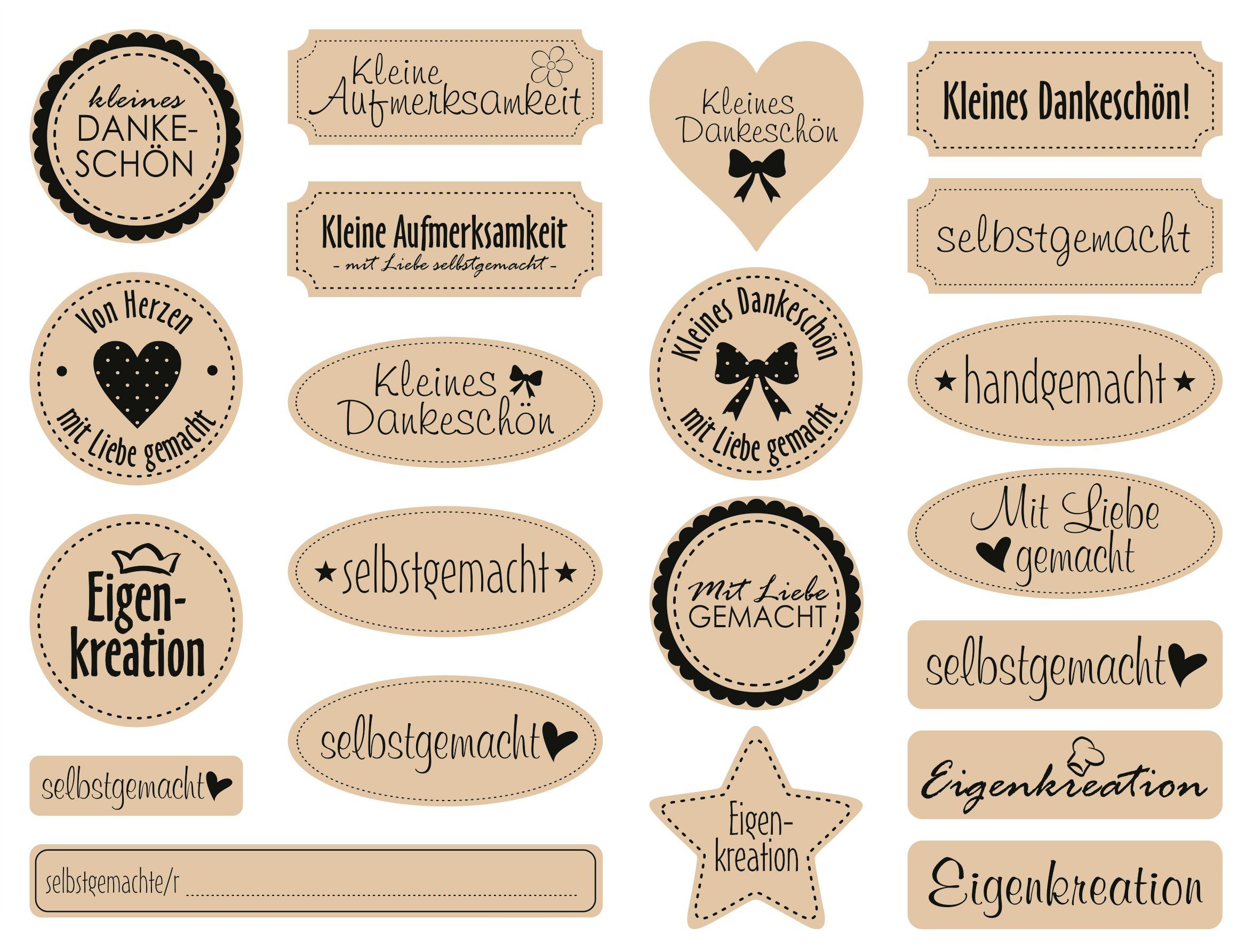 Kraftpapier-Sticker 'Selbstgemacht' mit 42 Stickern in 21 verschiedenen Motiven auf 4 Bogen. Die selbstklebenden Sticker sind ca. 3,4 – 5,0 cm groß. Perfekt zum Verzieren von Geschenkverpackungen mit selbstgemachten Kleinigkeiten, um einfach mal Danke zu sagen. Die Aufkleber lassen leicht beschriften.