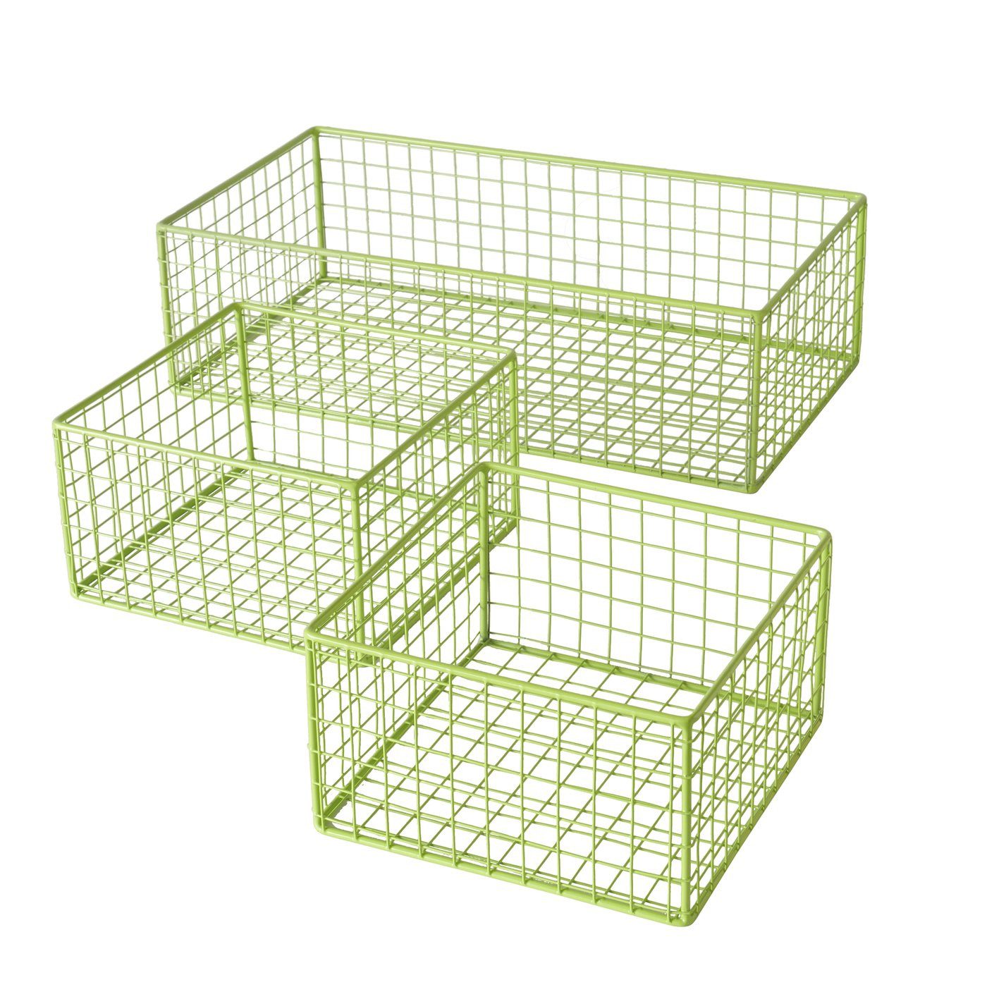 Das Korb-Set Bamba in frischem Mattgrün bringt stilvolle Ordnung in Ihr Zuhause. Die drei unterschiedlich großen Körbe bestehen aus robustem, pulverbeschichtetem Eisen und überzeugen mit klarer Gitterstruktur sowie funktionalem Design. Die lebendige grüne Farbe setzt dekorative Akzente und sorgt für ein modernes Erscheinungsbild, das sich mühelos in verschiedenste Wohnstile integrieren lässt. Ob zur Aufbewahrung im Büro, in der Küche oder im Jugendzimmer – dieses Set bietet vielseitige Einsatzmöglichkeiten. Die Körbe lassen sich einzeln nutzen oder kombinieren und sind ideal zum Verstauen von Alltagsgegenständen, Accessoires oder kleinen Pflanzen. Die stabile Ausführung und das offene Design machen Bamba zu einem langlebigen Ordnungshelfer mit zeitgemäßem Look. Eigenschaften: Material: Pulverbeschichtetes Eisen Einsatzbereich: Aufbewahrung für Wohnräume, Büro, Küche Kategorie: Aufbewahrung / Ordnungssystem Farbe: Mattgrün Stil: Modern, schlicht, funktional Maße: Korb 1: 21 cm x 21 cm x 12 cm Korb 2: ca. 33 cm x 23 cm x 13 cm (geschätzt und ergänzt) Korb 3: 45 cm x 24 cm x 13 cm Gesamtgewicht: ca. 1.590 g Hinweis: Nicht für Lebensmittel oder nasse Gegenstände geeignet
