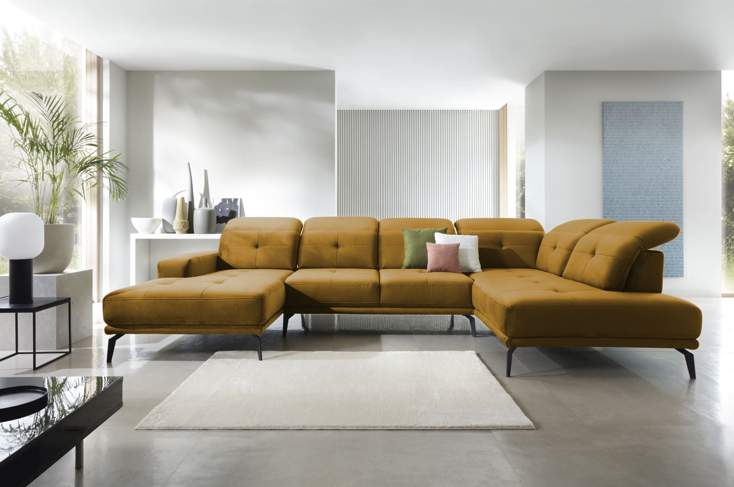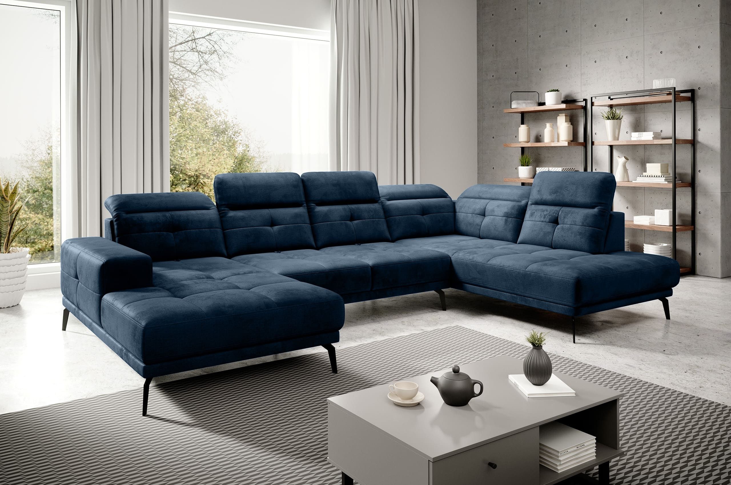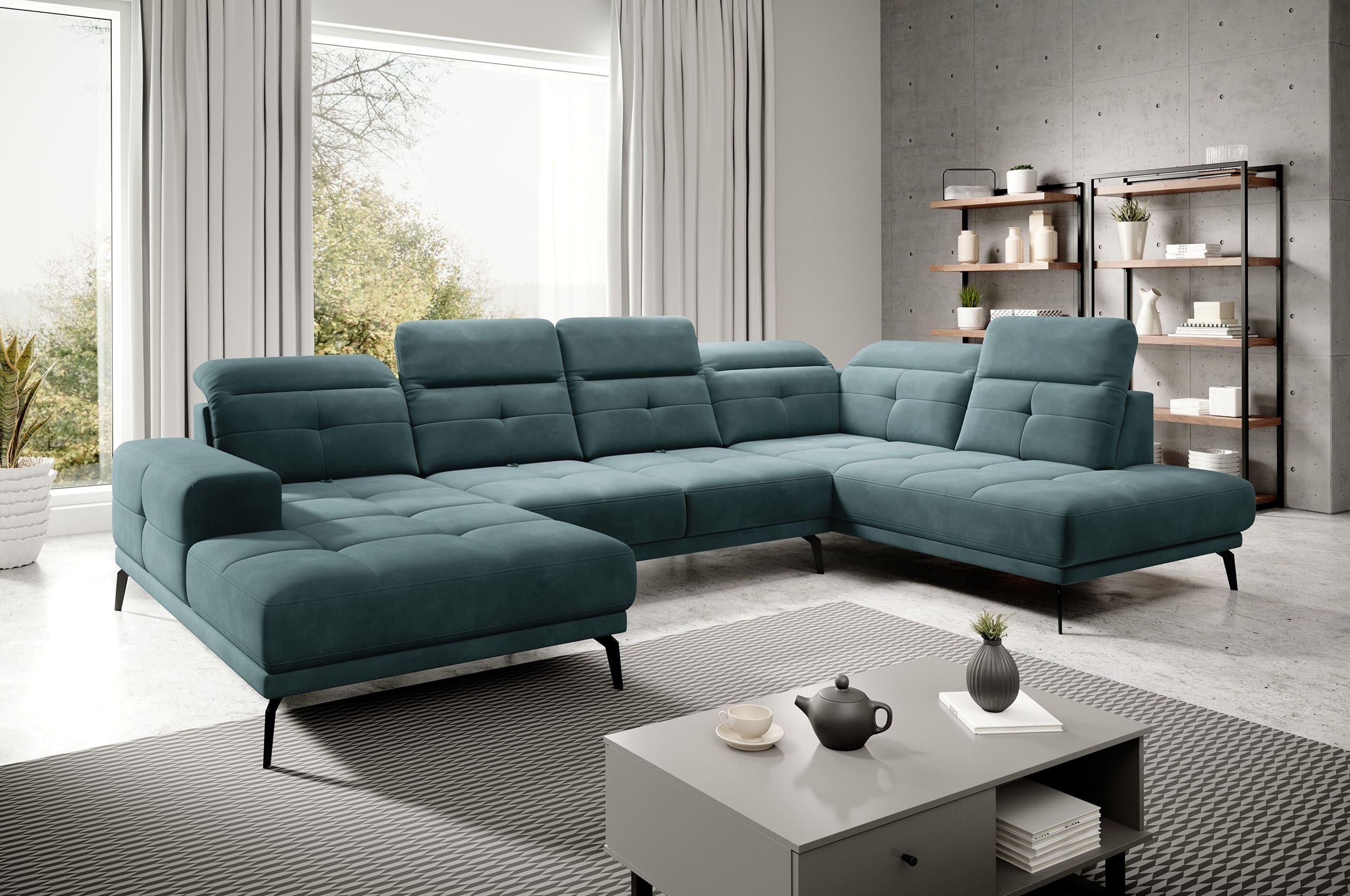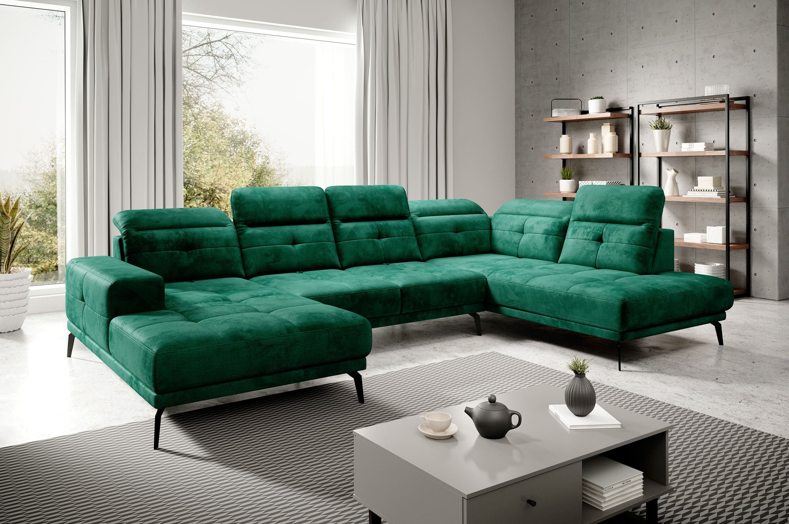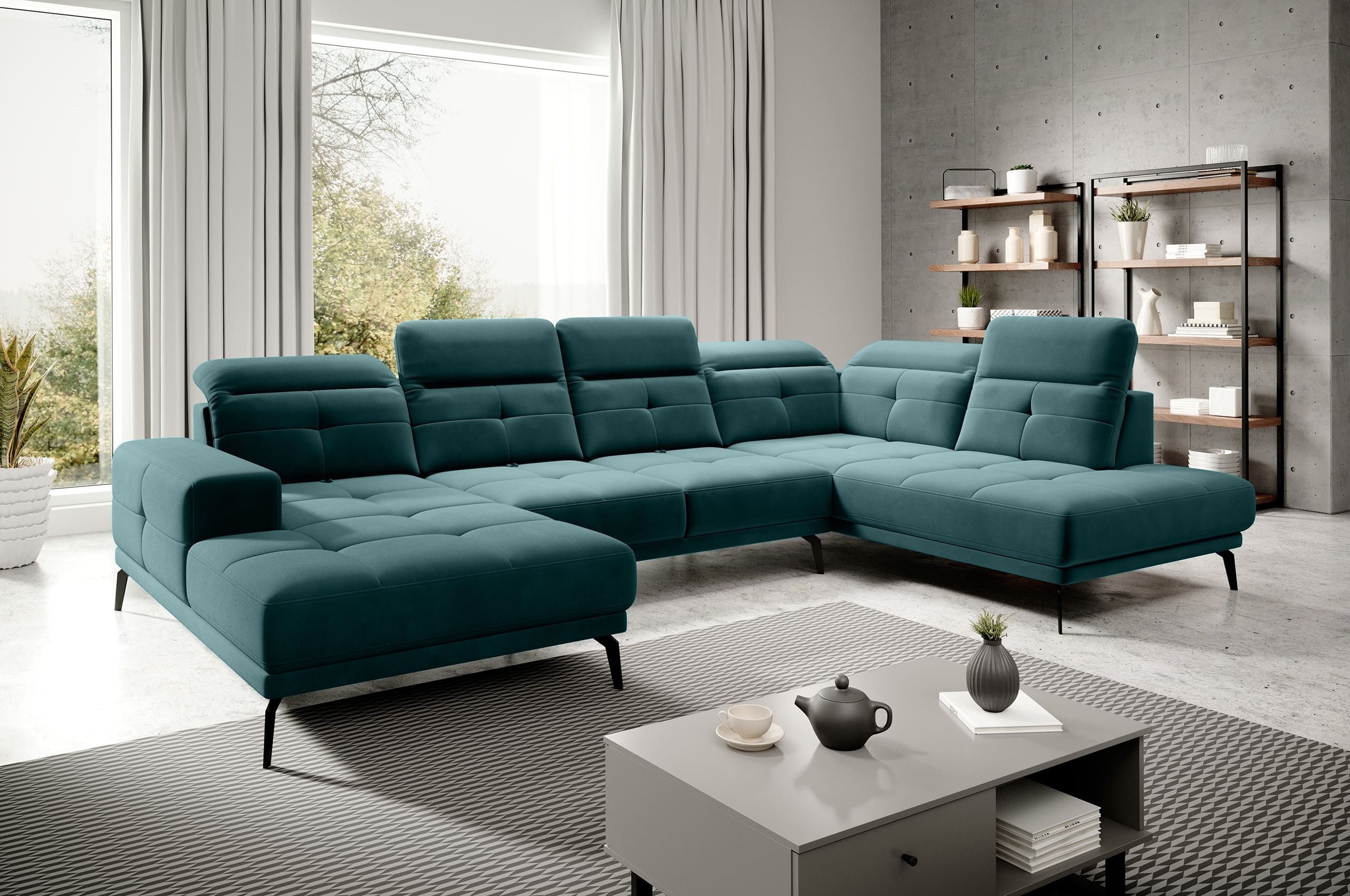 Das U-Sofa Brita im skandinavischen Design vereint minimalistischen Stil und Komfort auf höchstem Niveau. Mit Platz für sechs Personen und verstellbaren Kopfstützen bietet es eine flexible, bequeme Sitzgelegenheit für jedes Wohnzimmer. Die stilvolle Knopfheftung verleiht dem Sofa eine besondere Eleganz, die in modernen und klassischen Einrichtungsstilen gut zur Geltung kommt. Der robuste Holzrahmen und die langlebige Polsterung sorgen für Beständigkeit und machen das Sofa pflegeleicht. Dank der hohen Metallbeine in Schwarz wirkt das Sofa leicht und modern. Die widerstandsfähigen Materialien und die exzellente Verarbeitung machen das Sofa zur perfekten Wahl für eine langfristige Nutzung.