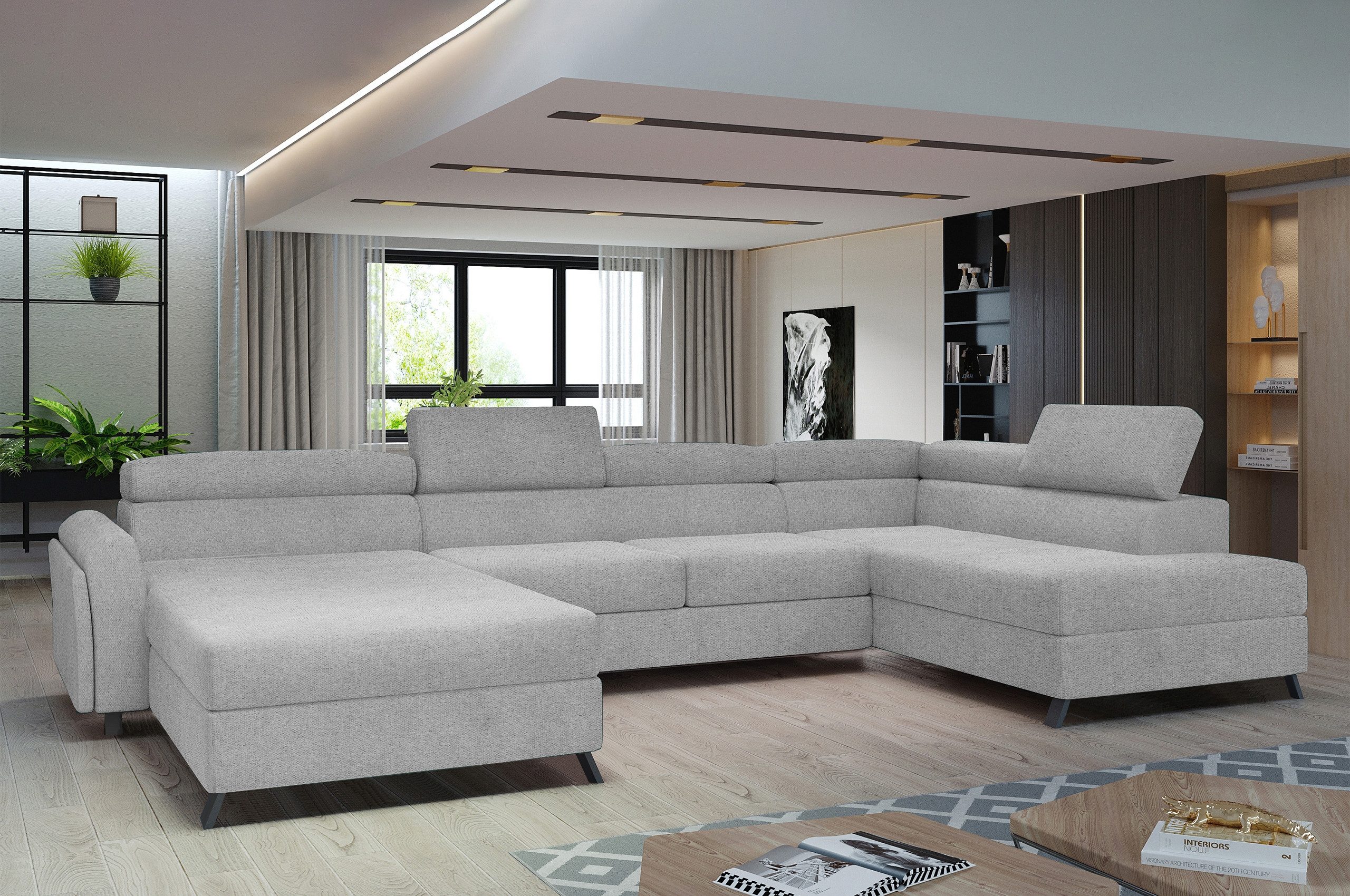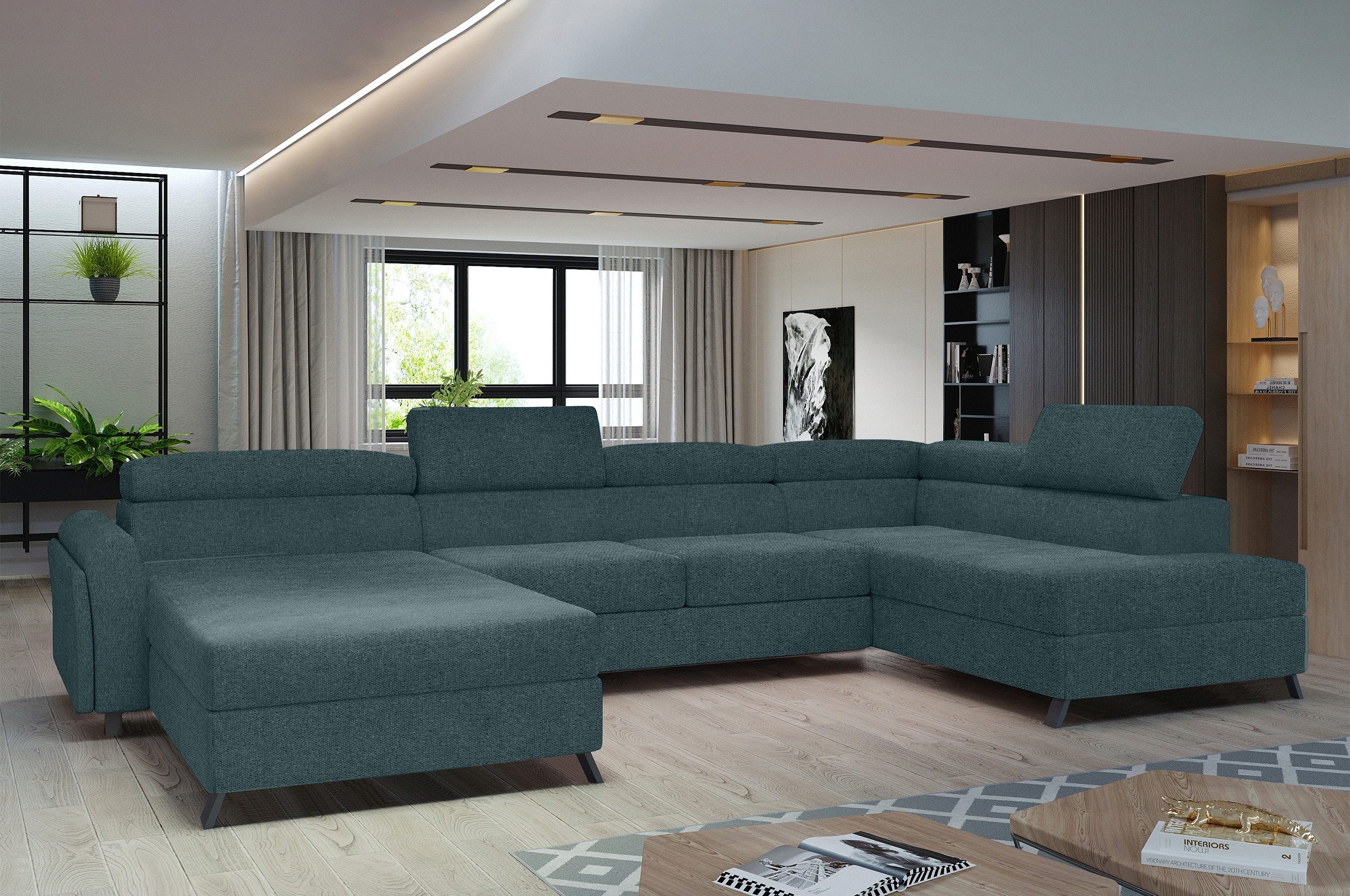 Zusätzlich verfügt das Sofa über einen geräumigen Bettkasten in der Ottomane. Verstellbare Kopfstützen und elegante Metall-Holz-Füße unterstreichen die hochwertige Verarbeitung. Wählen Sie Ihre Wunschfarbe und Seitenvariante für Ihr perfektes Möbelstück.