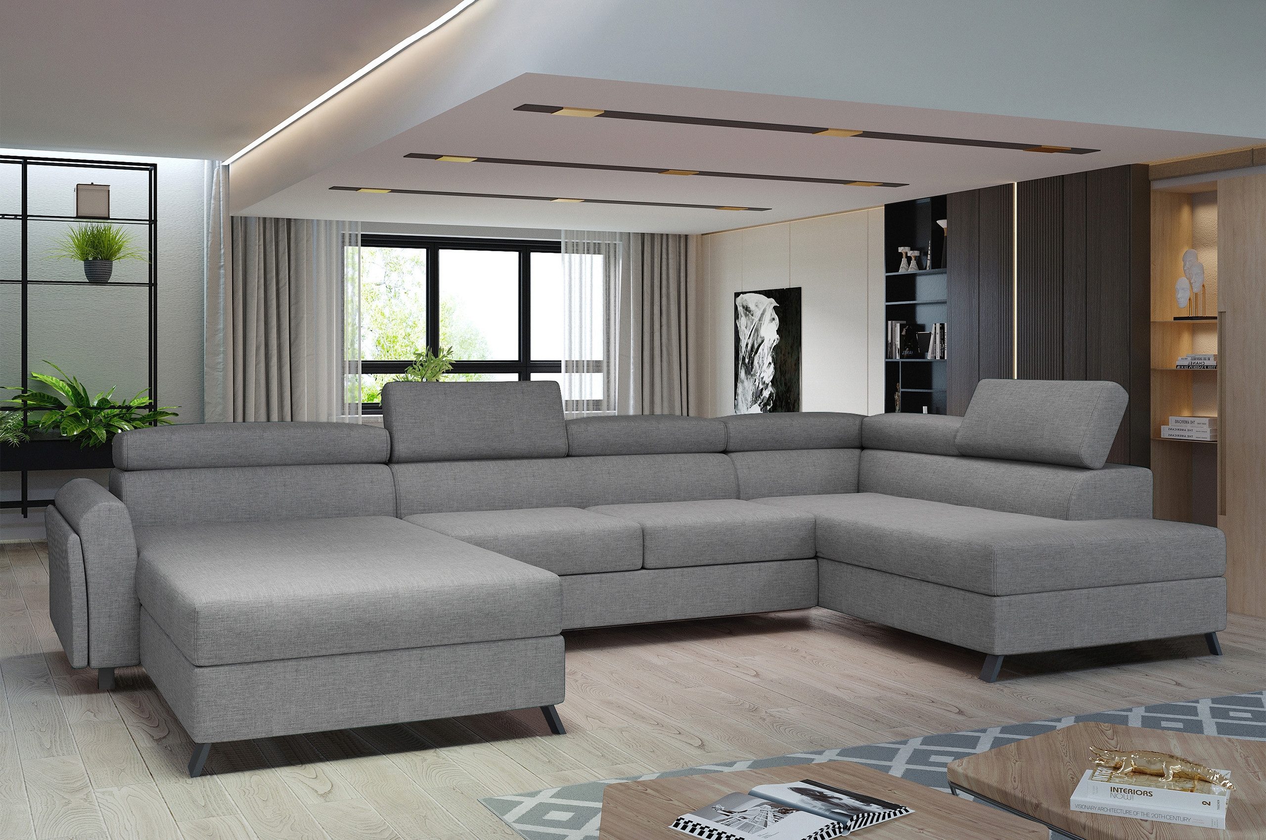 Die Wohnlandschaft Joseppe aus hochwertigem Webstoff bietet eine moderne Kombination aus Funktionalität und Komfort. Mit großzügigen Maßen von 360 x 200 x 92 cm ist sie perfekt für große Wohnzimmer geeignet.