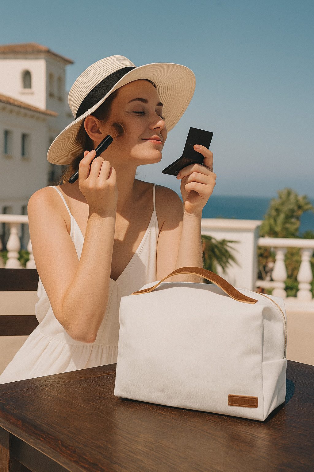 • Elegante Kosmetiktasche in Cremeweiß Braun