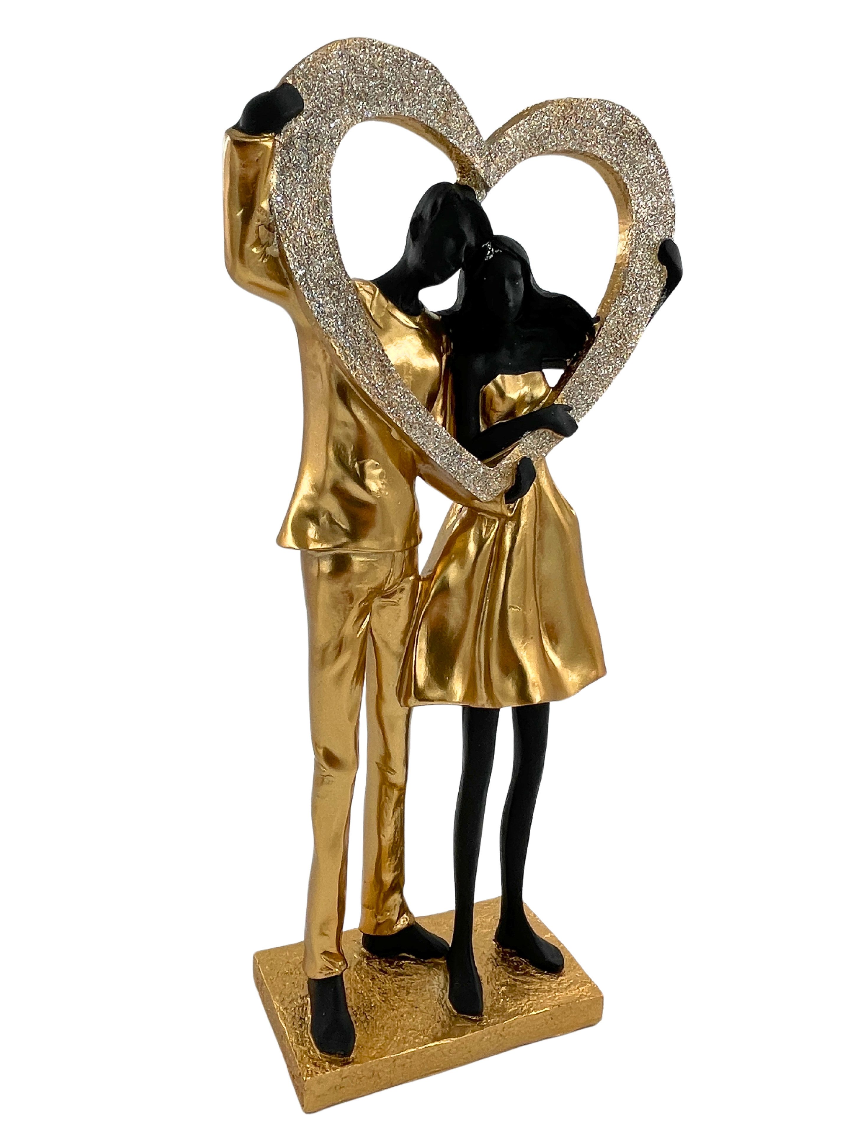 Paar-Skulptur, Herz-Skulptur, Dekor in Schwarz und Gold, romantische Statue, Liebe-Symbol-Dekor, Jubiläumsgeschenk, Hochzeitsdekoration, Polyresin-Figur, elegante Heimdekoration, moderne Skulptur, leichte Statue, künstlerische Skulptur, Paargeschenk, Innenarchitektur, Tischdekor
