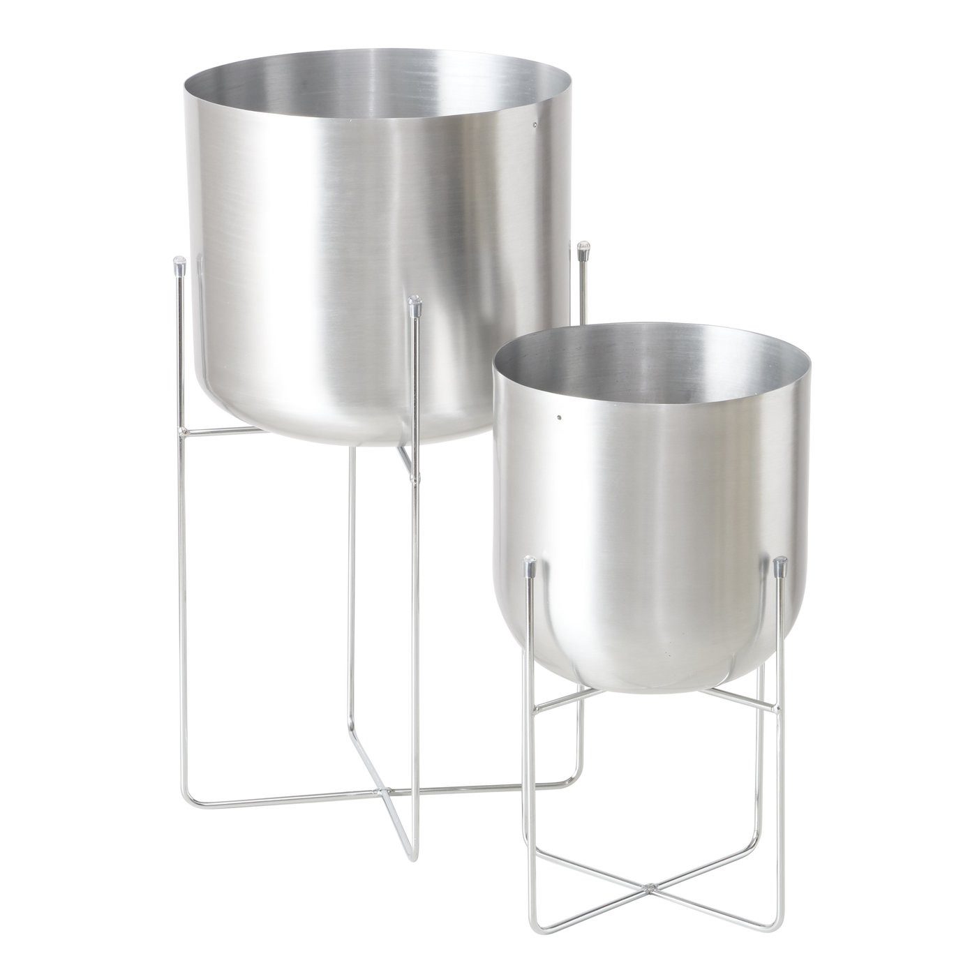 • Stilvolles 2‑teiliges Übertopf‑Set „Sofia“ mit silber mattem Finish und Gestell