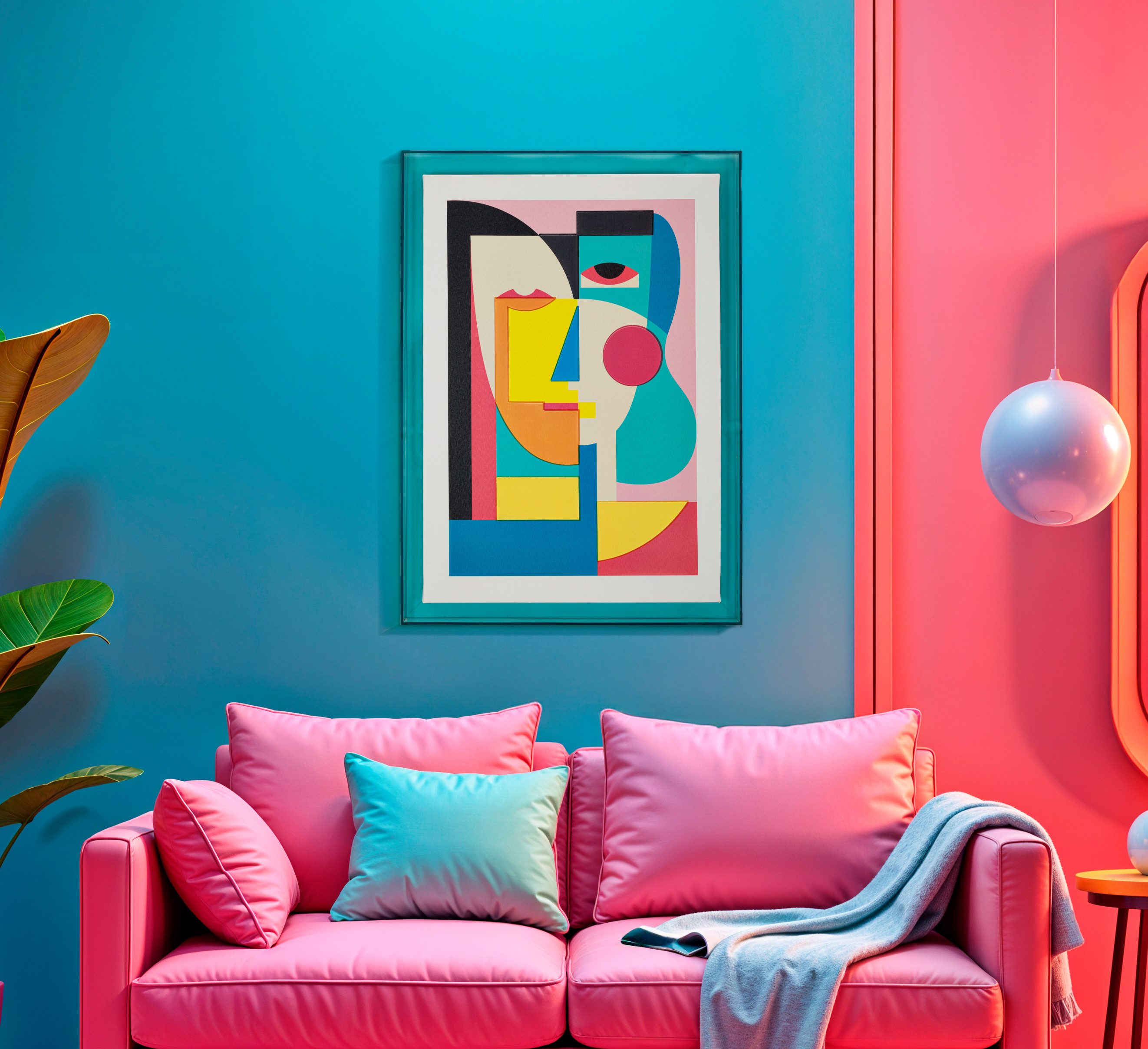 Das Wandbild Faceform ist ein modernes Kunstwerk mit starker Ausdruckskraft und stilistischer Klarheit. Inspiriert von kubistischen Einflüssen, zeigt das Motiv ein abstraktes Porträt, das durch kräftige Farbflächen und geometrische Kompositionen begeistert. Der ausdrucksstarke Acrylrahmen in leuchtendem Türkis verleiht dem Kunstwerk zusätzlich eine dynamische, zeitgemäße Note. Die Kombination aus gespannter Leinwand, MDF-Träger und Acrylglas schafft ein hochwertiges Finish mit Tiefe und Charakter – perfekt für moderne Interiors, die Kunst und Design vereinen. Eigenschaften: Hochwertige Leinwand auf MDF mit farbintensivem Kunstdruck Moderner Rahmen aus türkisem Acryl – auffallend und edel zugleich Kategorie: Wanddekoration / Modern / Новинки Inspiriert vom Kubismus – stark in Farbe und Form Ideal für Wohnräume, Flure oder kreative Arbeitsbereiche Maße: 50 x 70 x 3,3 cm Gewicht: 2,39 kg