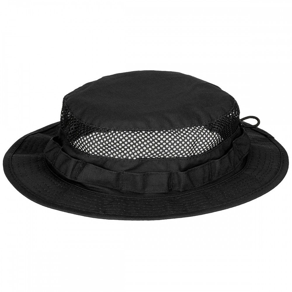 Ausstattungsdetails | Netzeinsätze für optimale Belüftung, vielfach abgesteppte Hutkrempe, umlaufende Schlaufen, verdeckter, elastischer Kordelzug mit Kordelstopper zur Weitenregulierung |