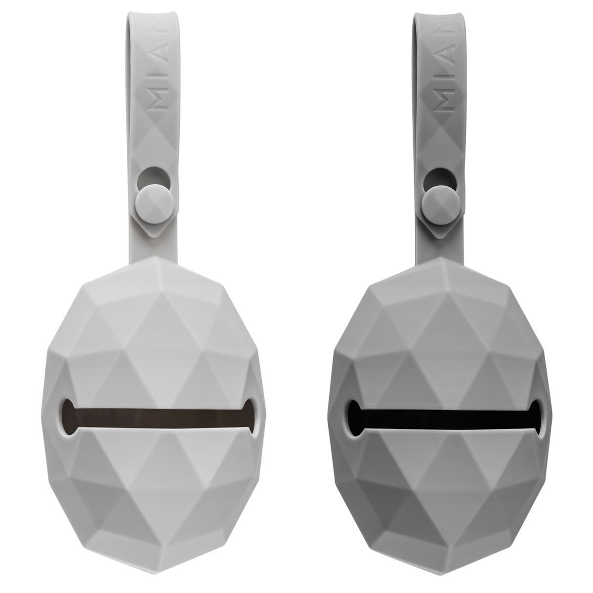 Im praktischen MiaMia Silikon-Schnullerbox / Schnullerhalter im 2er Pack - Diamant - Grau Hellgrau können die Lieblingsschnuller Ihres kleinen Schatzes hygienisch und sauber aufbewahrt werden. Die Boxen bieten jeweils Platz für bis zu 3 Schnuller. Da die Schnullerboxen mit einem breiten Schlitz auf der Vorderseite ausgestattet sind, lassen sie sich leicht öffnen, befüllen oder etwas entnehmen. Außerdem können Sie die Lieblingströster darin einfach in die Hand- oder Wickeltasche stecken, ohne viel Platz dafür zu benötigen.