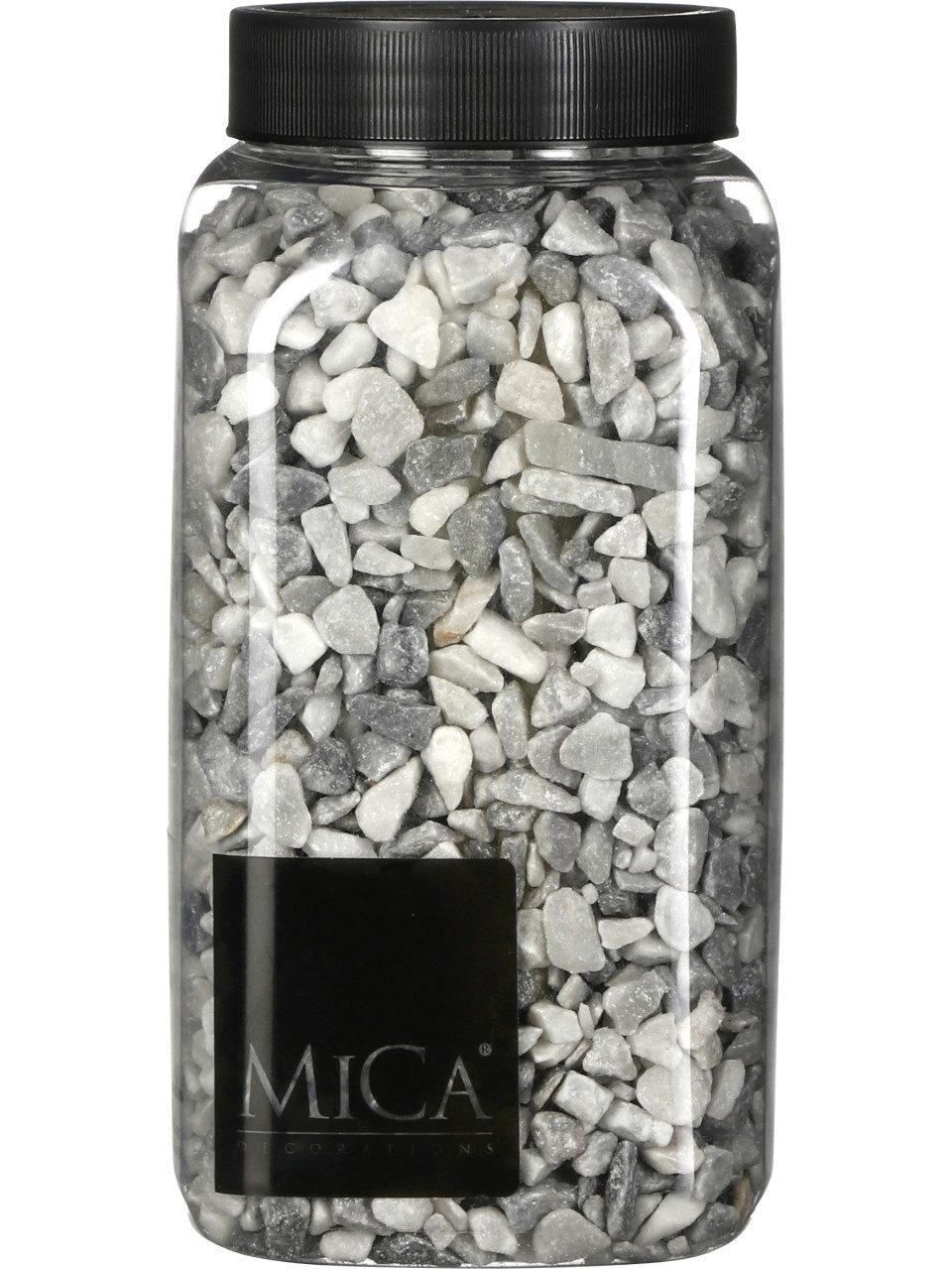 Ergänzen Sie Ihre Dekorationen im Haus mit diesen Dekosteinchen von Mica Decorations. Auch schön für ein kreatives Heimwerkerprojekt oder um andere Dinge zu dekorieren. Es passt zum Beispiel in eine Schale mit Kerzen, als Füllmaterial mit einigen Pflanzen oder in Glasvasen. Der Kies hat durch die verschiedenen hellgrauen Töne eine natürliche Wirkung und kann mit allem kombiniert werden. Suchen Sie etwas anderes? Die Dekosteinchen sind in verschiedenen Farben und Größen erhältlich. Sie sind ungefähr 5-8 mm groß. Der Topf hat einen Inhalt von 650 ml.