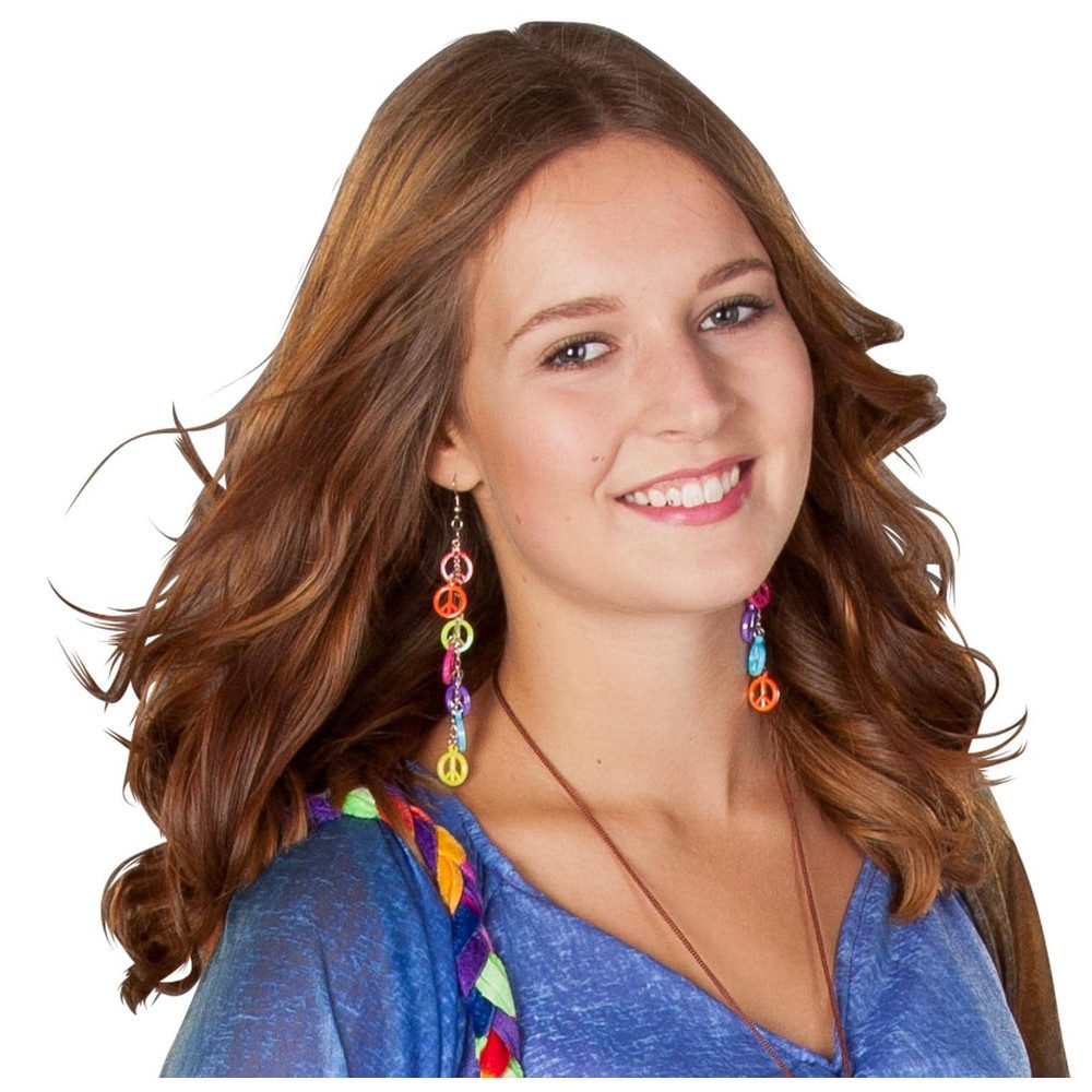 Back to the 70's!Sie mögen es, sich an Fasching standesgemäß zu verkleiden und sind auf der Suche nach farbenfrohem und abwechslungsreichem Zubehör für Ihr Hippie-Kostüm? Dann haben wir hier eine wunderbare Idee! Der schicke Faschingsschmuck ist genau das Richtige für all diejenigen, die in der närrischen Zeit richtig auffallen möchten und keine Lust auf langweilige Standards haben. Er kommt in Form eines Paares Ohrhänger daher, die aus Kunststoff bestehen und insbesondere dank den kunterbunten Peace-Zeichen fröhliche Blickfänger sind. Damit verwandeln Sie sich binnen Sekunden in ein blumiges Hippie-Mädchen, während sie sich darüber hinaus mühelos mit den unterschiedlichsten Outfits kombinieren lassen. Also lassen Sie Ihrer Fantasie freien Lauf und stylen Sie munter drauflos! Mit diesen niedlichen Ohrringen ist Flower Power garantiert!Впередführende Informationen zum "Faschingsschmuck":Lieferumfang: 1 Paar OhrringeMaterial: KunststoffDesign: PeaceДлина: 9,5 cmFarben: buntHersteller: MICA FestivalArtikelnummer: B 44565