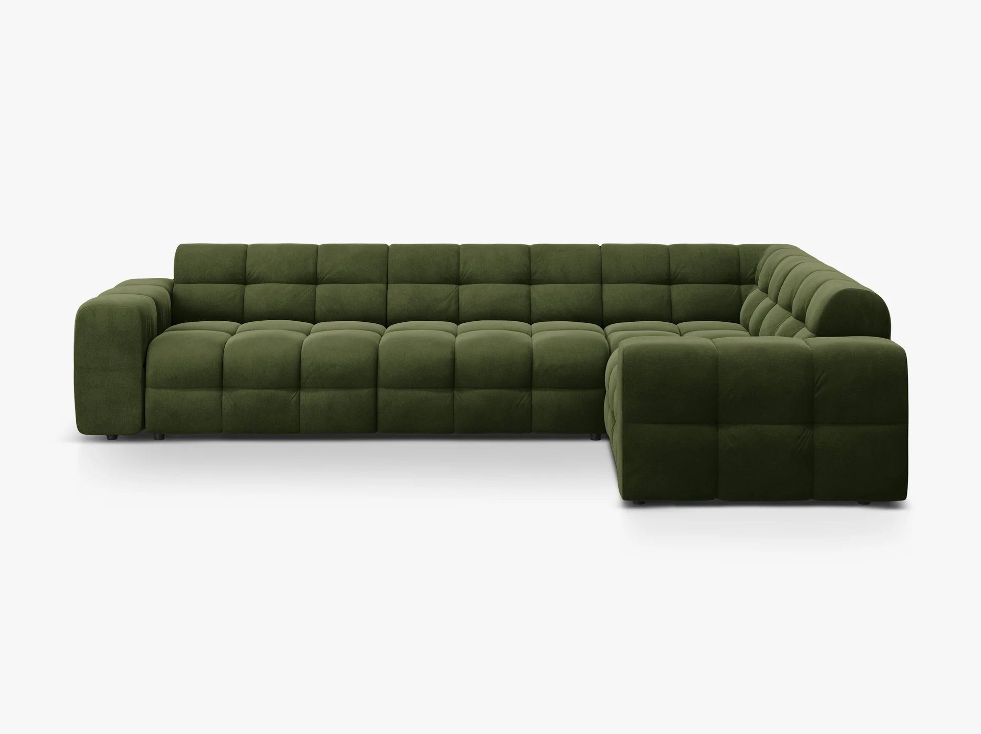 Das spektakuläre Sofa Kendal besticht durch seine markanten Steppungen und Ziernähte in der gesamten Polsterung. Die geschwungenen Sitz-, Rücken- und Armlehnen sowie der Sockel laden zum entspannten Verweilen ein. Das Sofa sieht von allen Seiten gleich gut aus. Dieses erstaunliche Möbelstück ist nicht nur ein Blickfang, sondern vor allem sehr bequem, was durch die komfortable Polsterung garantiert wird. Diese avantgardistische Interpretation des klassischen Sofas mit seinen schuppenartigen Steppnähten und seiner ausladenden Form wird alle ansprechen, die auf der Suche nach Designinnovationen sind und Experimente nicht scheuen.