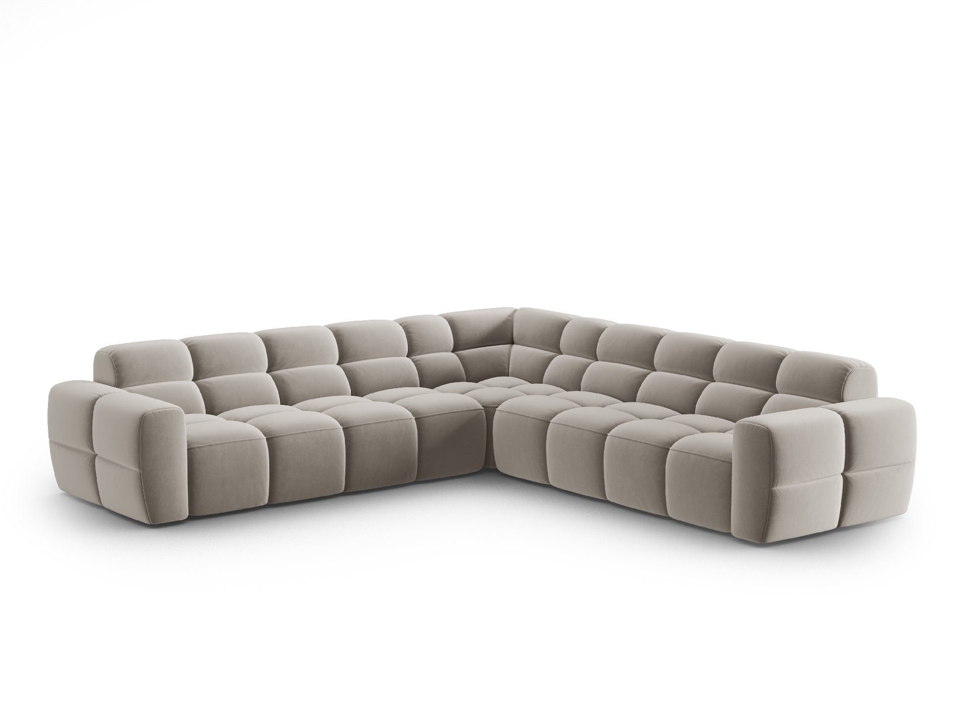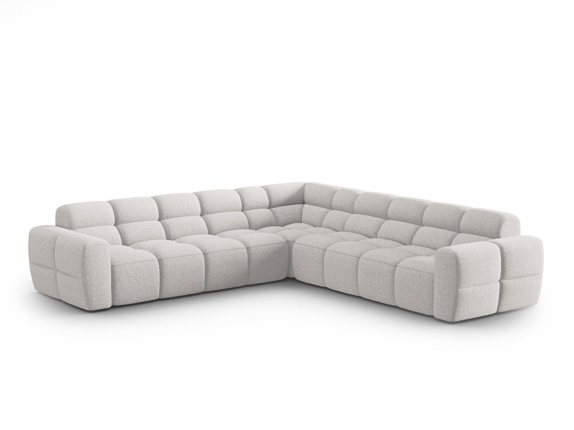 Lisa Symmetrisches Ecksofa - das Sofa, das alle Blicke auf sich zieht! Wenn Sie modernen Stil mit extra viel Gemütlichkeit kombinieren möchten, sind Sie hier genau richtig. Mit seiner großzügigen Размер und den klaren, quadratischen Formen ist Lisa der perfekte Eyecatcher für große Räume oder offene Wohnbereiche. Und das Beste: Es bietet Platz für fünf Personen, die sich dank der tiefen Sitze und weichen Rückenlehnen einfach nur wohlfühlen werden.