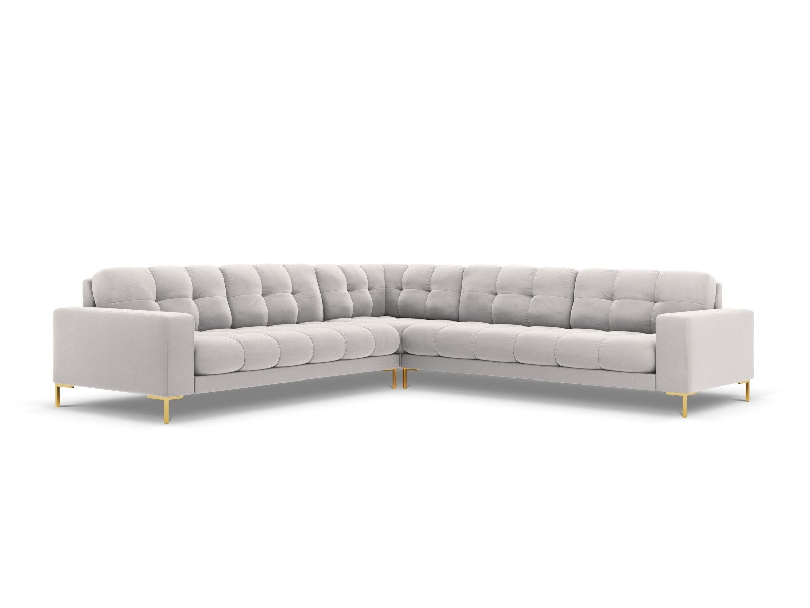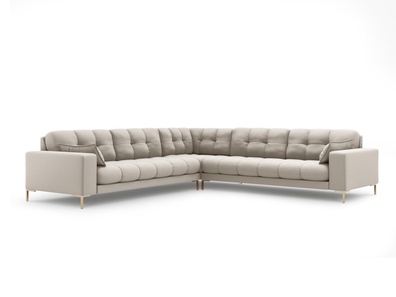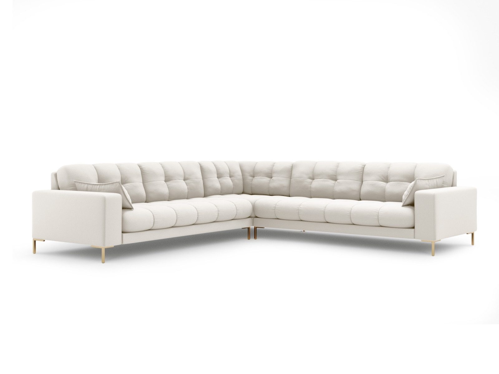 Sie mögen es gern stilvoll, großzügig und bequem? Dann wird das symmetrische Ecksofa Mamaia von Micadoni Home Ihre neue Lieblingssitzgelegenheit. Hier trifft modernes Design auf durchdachte Funktionalität – und das Ganze auf charmant goldenen Füßen!