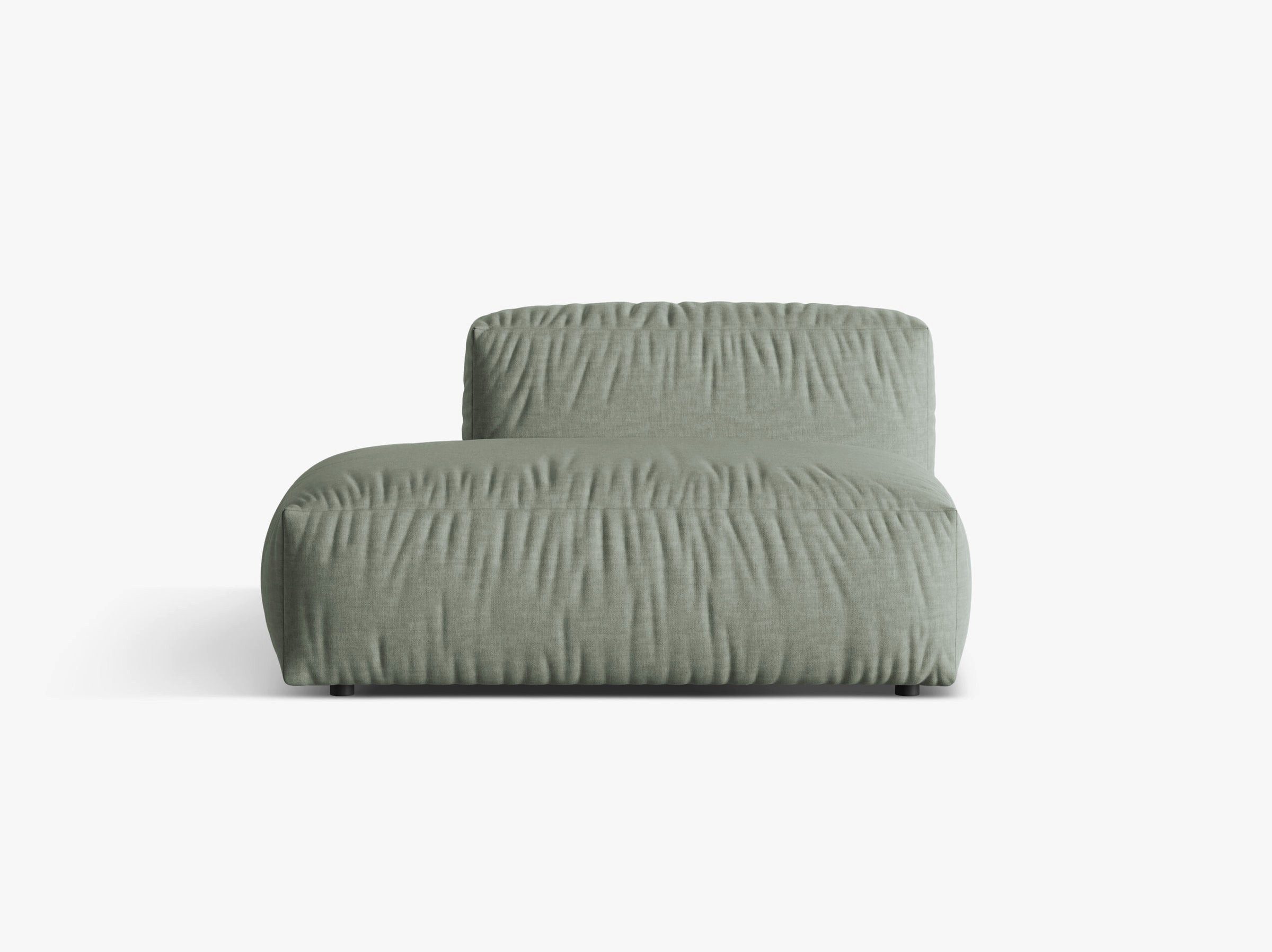 Unter dem lässig gerafften Bezug steckt ein Mix aus hochwertigem Polyurethan-Schaumstoff in zwei Dichten (30 & 35 kg/m³) plus einer soften Watteschicht mit 600 g/m². Das sorgt für eine stabile Basis mit kuscheliger Oberfläche – so wie es sich für ein Modul gehört, das man immer wieder gern in Beschlag nimmt.