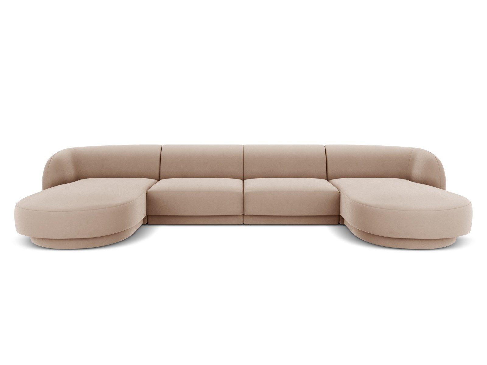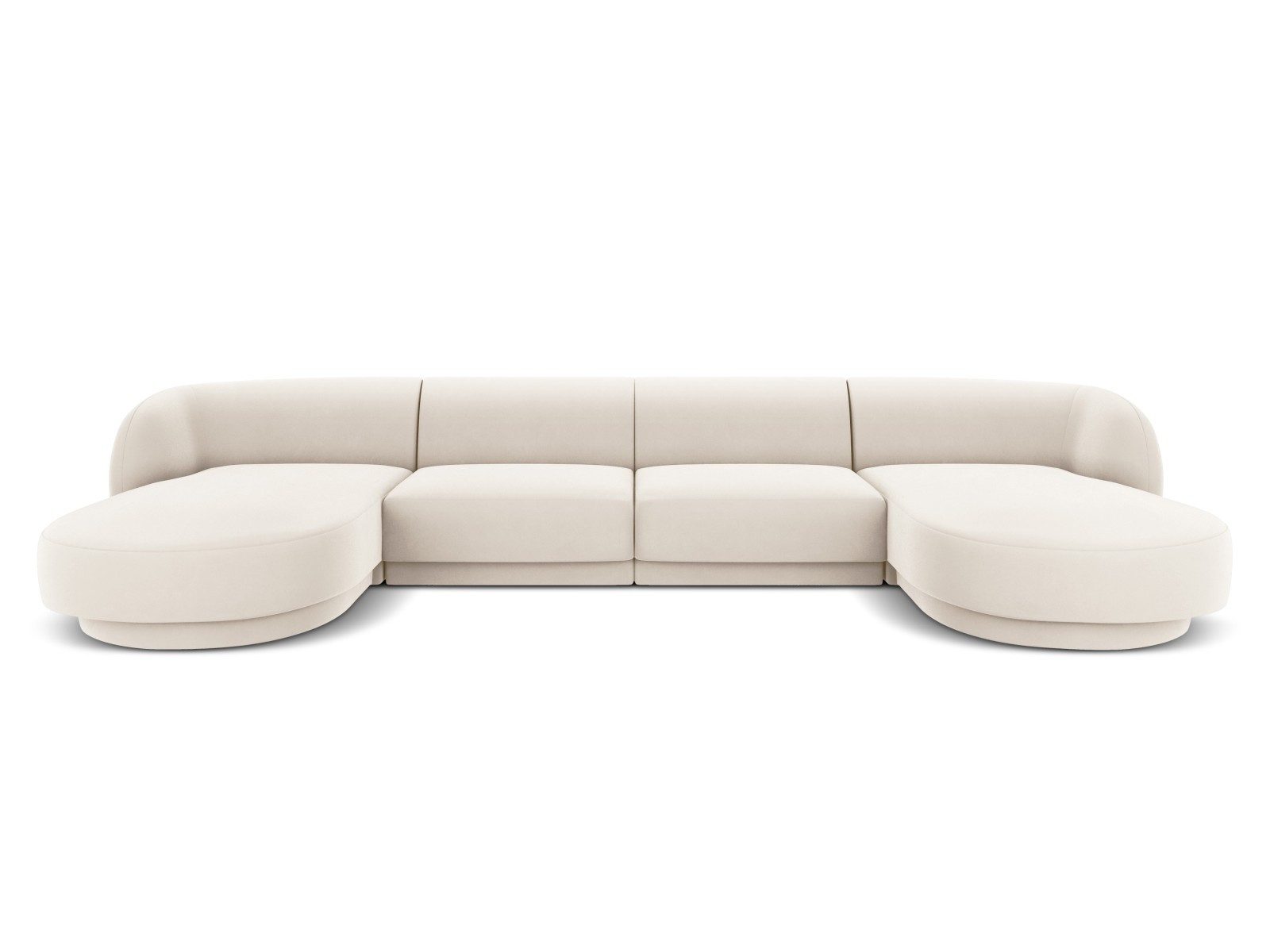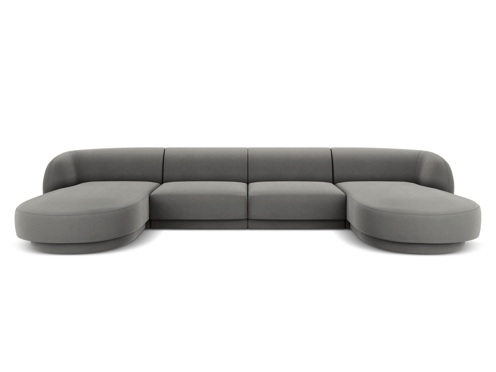 Das moderne Sofa Miley besticht durch seine runden Formen, die perfekt zu den neuesten Einrichtungstrends passen. Neben ihrer einzigartigen, minimalistischen Form zeichnen sie sich durch einen außergewöhnlichen Komfort aus. Die niedrige, umlaufende Rückenlehne geht sanft in die profilierten Armlehnen über, was sehr stimmig und natürlich wirkt. Zudem bietet sie in jeder Sitz- und Liegeposition ausreichend Halt. Die abgerundeten Sitzflächen mit dicker, elastischer Polsterung fördern die Entspannung. Das Design basiert auf einer leichten Erhöhung, die den Eindruck vermittelt, über dem Boden zu schweben. Wenn Sie Harmonie im Stil suchen, ist das Sofa Miley genau das Richtige für Sie.