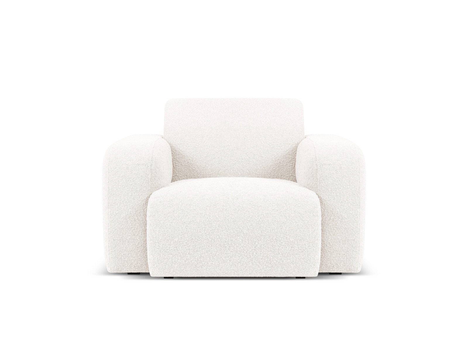 Die weichen Rundungen und die 25 cm breiten Armlehnen machen den Molino Sessel zu einem echten Hingucker. Mit einer Armlehnenhöhe von 54 cm können Sie sich bequem zurücklehnen und die Arme ablegen - der perfekte Platz, um die Füße hochzulegen und den Tag hinter sich zu lassen. Die schlichten schwarzen Kunststofffüße heben den Sessel dezent um 1 cm an und unterstreichen den modernen, minimalen Look.