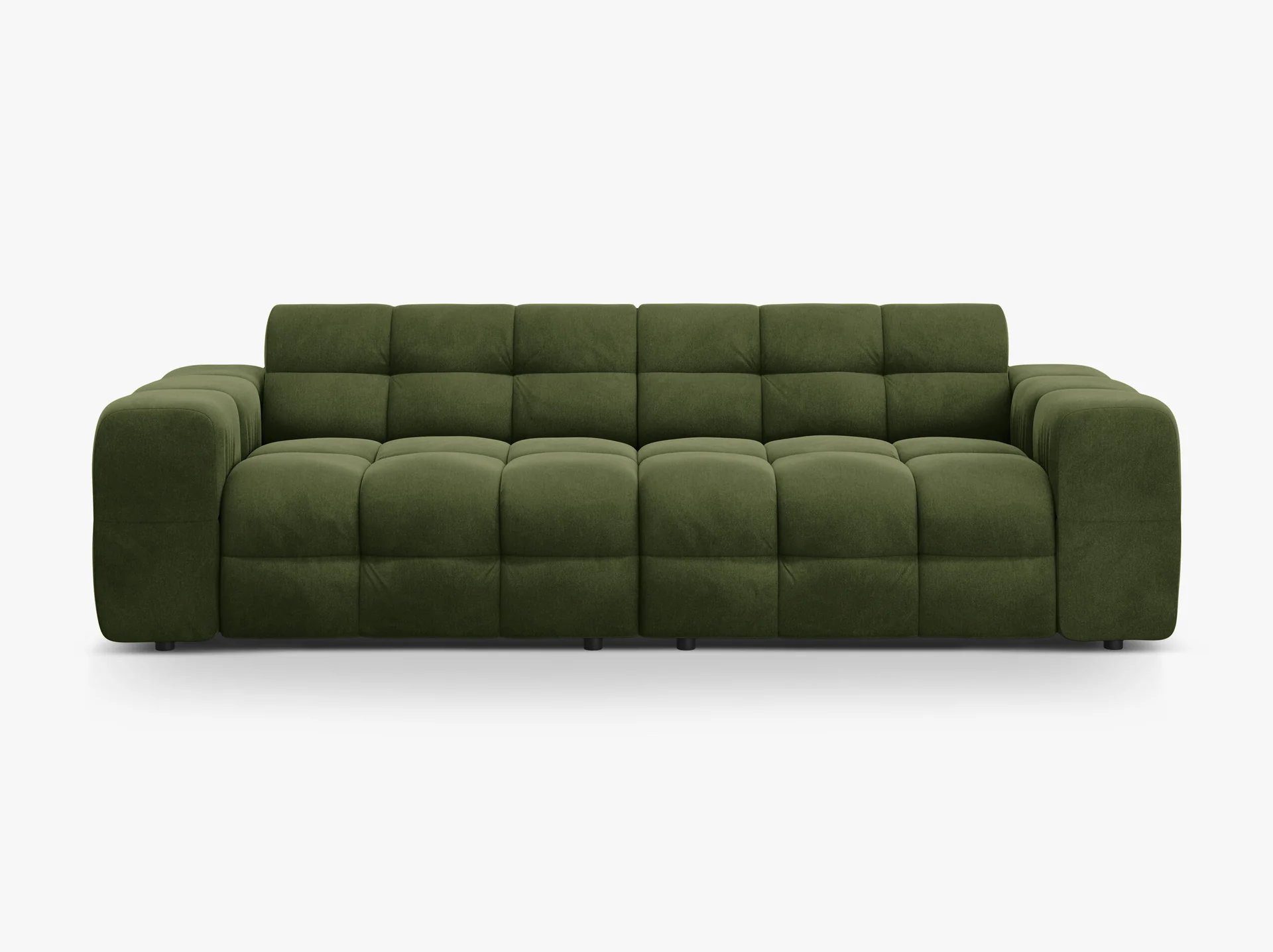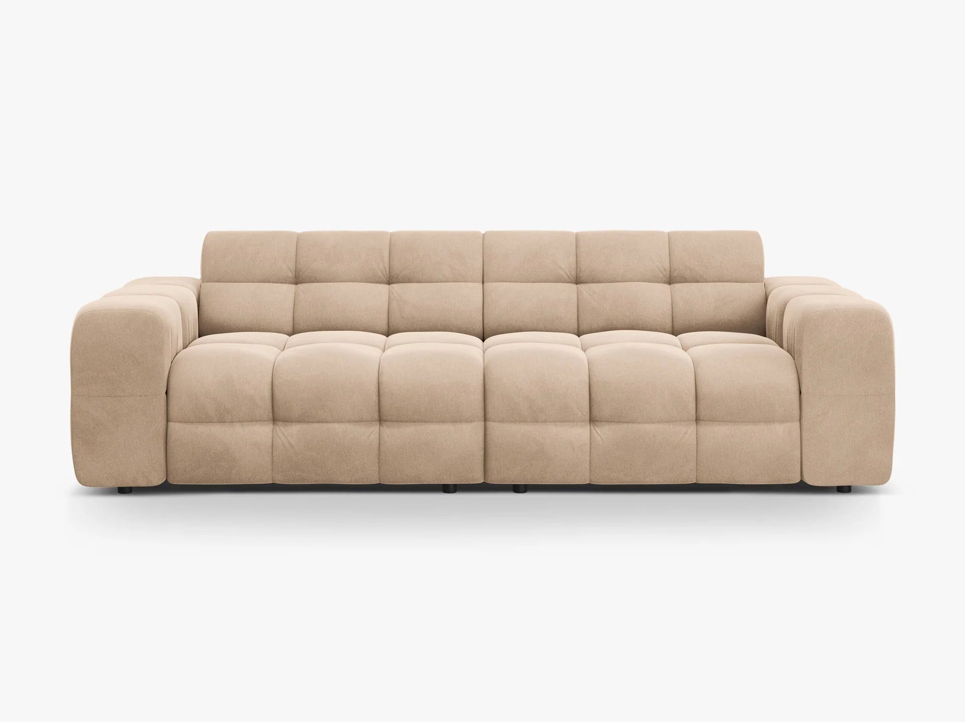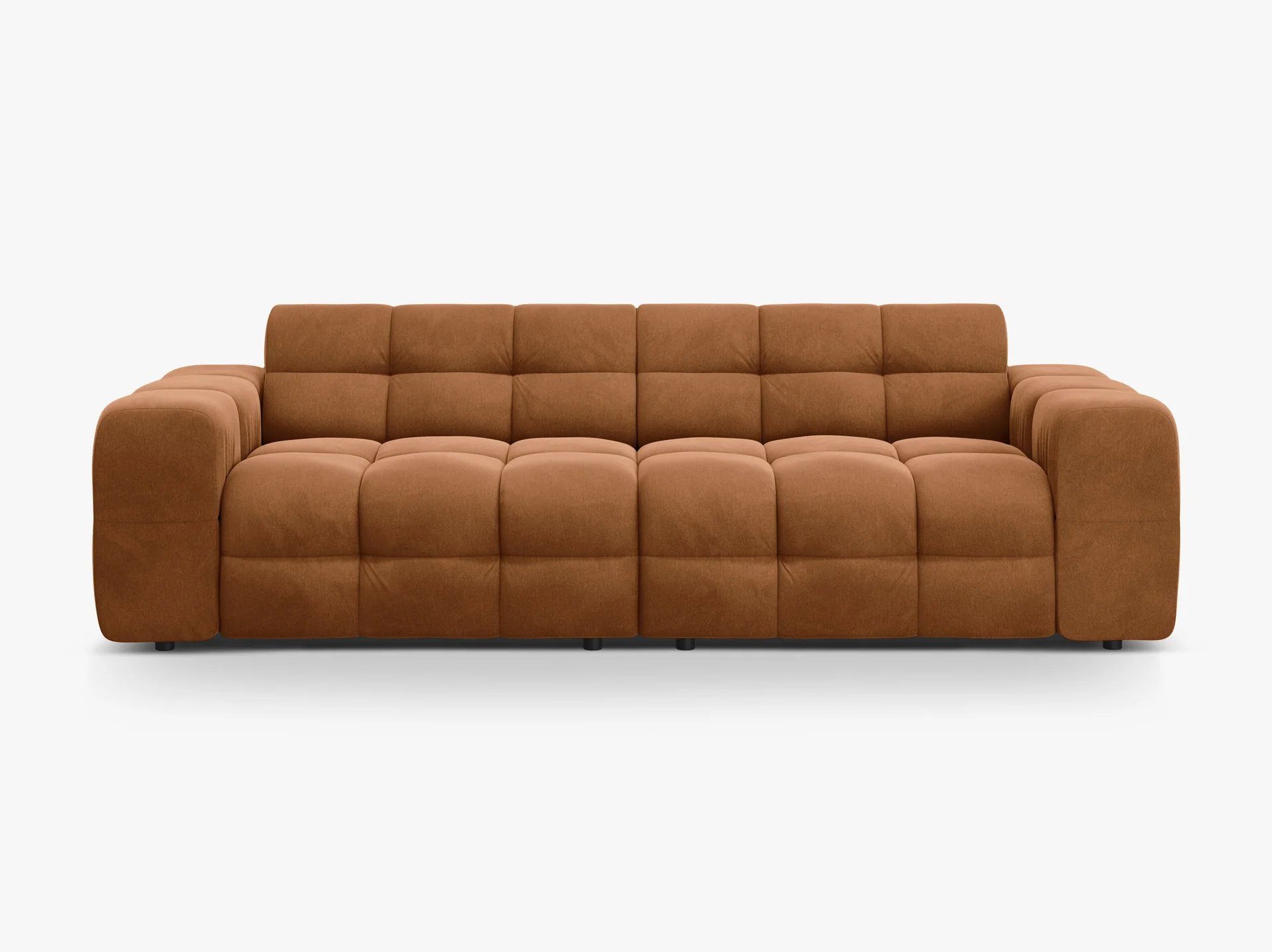 Das spektakuläre Sofa Kendal besticht durch seine markanten Steppungen und Ziernähte in der gesamten Polsterung. Die geschwungenen Sitz-, Rücken- und Armlehnen sowie der Sockel laden zum entspannten Verweilen ein. Das Sofa sieht von allen Seiten gleich gut aus. Dieses erstaunliche Möbelstück ist nicht nur ein Blickfang, sondern vor allem sehr bequem, was durch die komfortable Polsterung garantiert wird. Diese avantgardistische Interpretation des klassischen Sofas mit seinen schuppenartigen Steppnähten und seiner ausladenden Form wird alle ansprechen, die auf der Suche nach Designinnovationen sind und Experimente nicht scheuen.