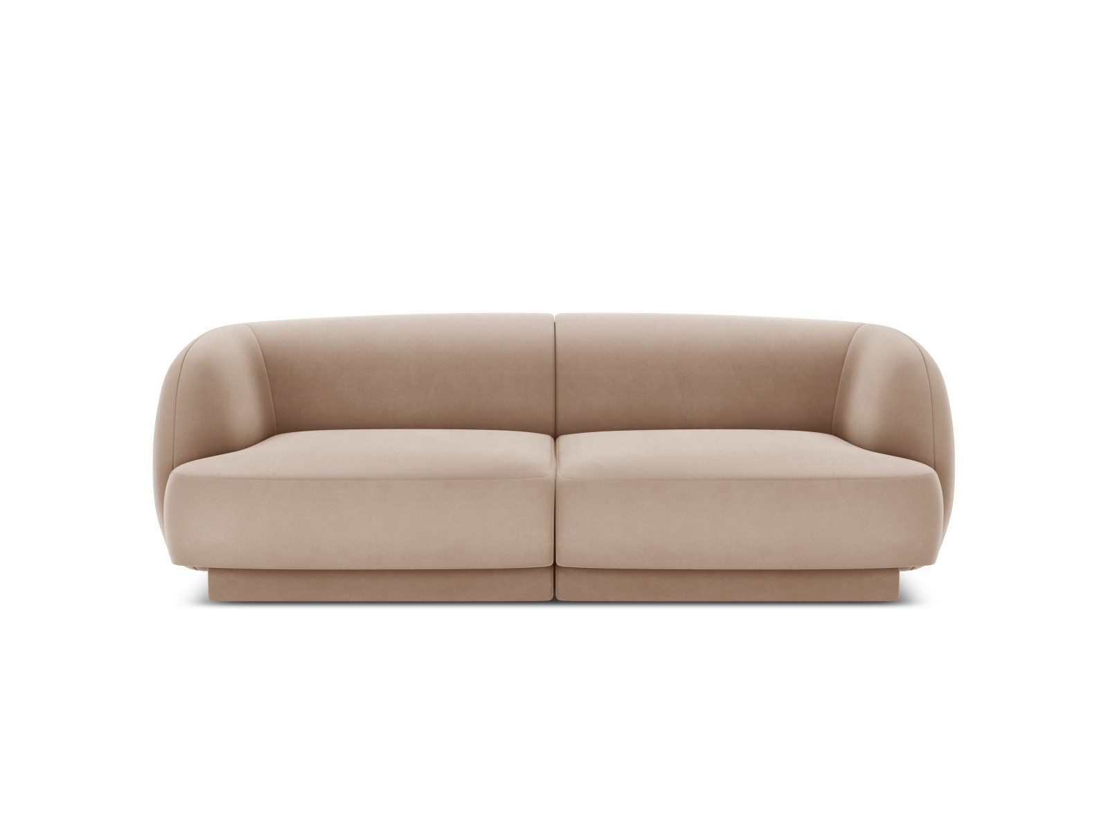 Das moderne Sofa Miley besticht durch seine runden Formen, die perfekt zu den neuesten Einrichtungstrends passen. Neben ihrer einzigartigen, minimalistischen Form zeichnen sie sich durch einen außergewöhnlichen Komfort aus. Die niedrige, umlaufende Rückenlehne geht sanft in die profilierten Armlehnen über, was sehr stimmig und natürlich wirkt. Zudem bietet sie in jeder Sitz- und Liegeposition ausreichend Halt. Die abgerundeten Sitzflächen mit dicker, elastischer Polsterung fördern die Entspannung. Das Design basiert auf einer leichten Erhöhung, die den Eindruck vermittelt, über dem Boden zu schweben. Wenn Sie Harmonie im Stil suchen, ist das Sofa Miley genau das Richtige für Sie.