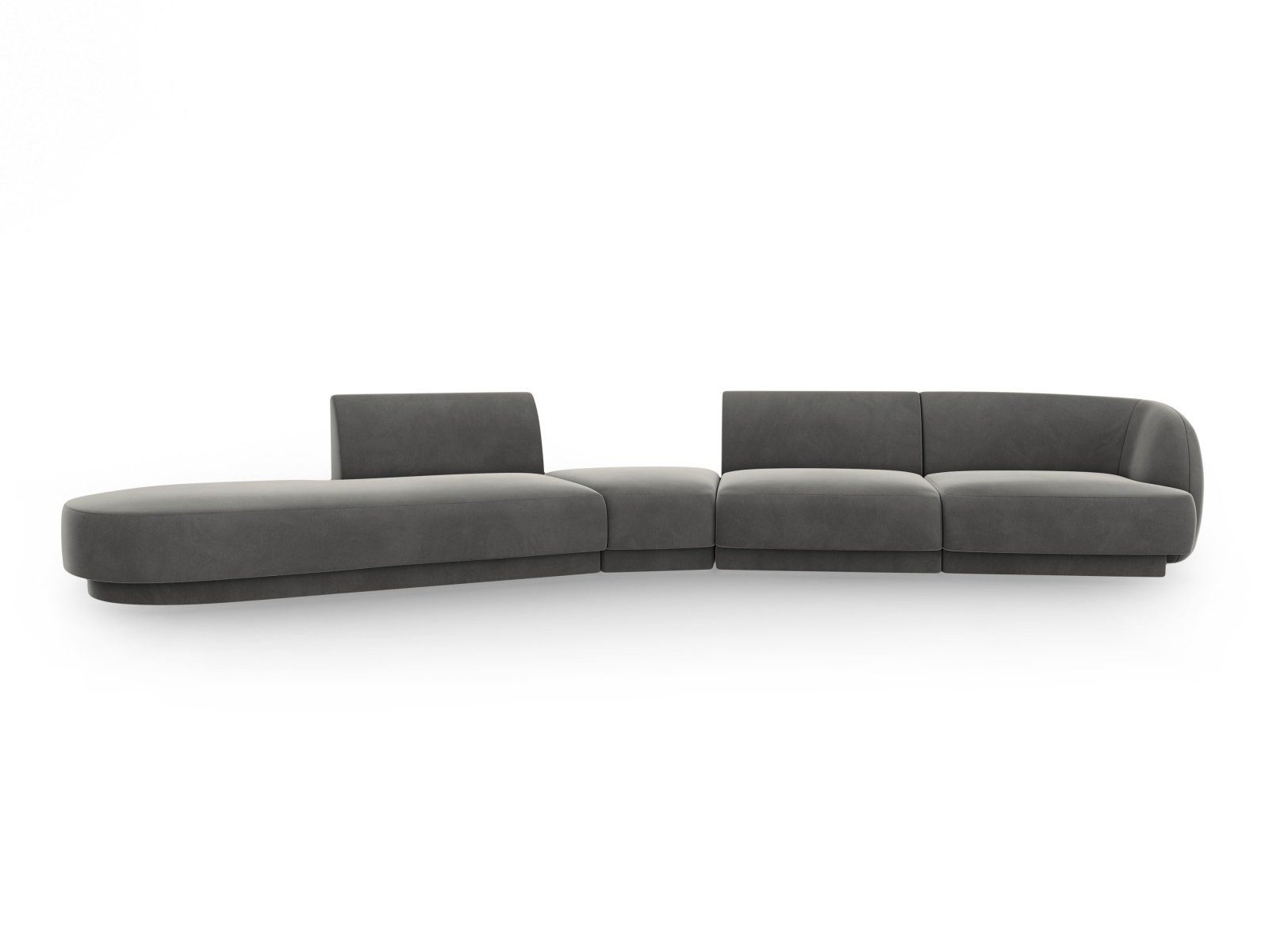 Miley 5-Sitzer Sofa - Hier trifft modernes Design auf außergewöhnlichen Komfort. Mit seiner weichen, organischen Form und der großzügigen Recamiere auf der linken Seite ist das Sofa perfekt für alle, die sich nach einem langen Tag einfach mal ausstrecken wollen. Der rechte Teil bietet Platz für drei Personen - optimal für gesellige Abende mit Freunden. Miley vereint geschwungene Linien mit einem klaren, minimalistischen Look - ein echtes Highlight für moderne Wohnräume.