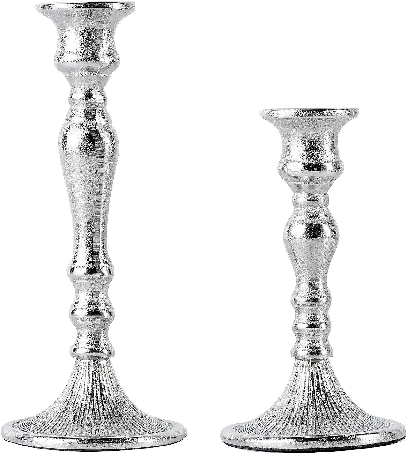 2 Kerzenständer aus Aluminium von Michael Noll. Das 2er Set Kerzenständer in der Farbe Silber wurde aus massivem Aluminium gefertigt und steht durch sein hohes Eigengewicht sehr stabil. Die Kerzenständer wirken sehr luxuriös und sind ein absolutes Deko-Highlight. Die Применитьung der Kerzenständer ist zu 100 % von Hand erfolgt und wurde mit viel Leidenschaft ausgeführt. Die Oberfläche der Kerzenhalter wurde nicht poliert, daher besitzen sie eine wunderschöne Oberflächenstruktur und “RAW“-Optik. Geeignet sind die Kerzenständer für handelsübliche Stabkerzen. Diese Kerzenständer sind das perfekte Wohnaccessoire und lassen sich wunderbar in dein gemütliches Zuhause integrieren. Natürlich sind die 2 Kerzenständer auch perfekt für die Gastronomie, ein Restaurant, oder eine Bar geeignet. Zusätzlich sind die Kerzenhalter sehr pflegeleicht und müssen nur mal ab und zu mit einem trockenen Tuch, oder einem leicht angefeuchtetem Lappen gesäubert werden. Der Boden der Kerzenhalter ist mit einer Filzunterlage und Schutz vor Kratzern versehen.