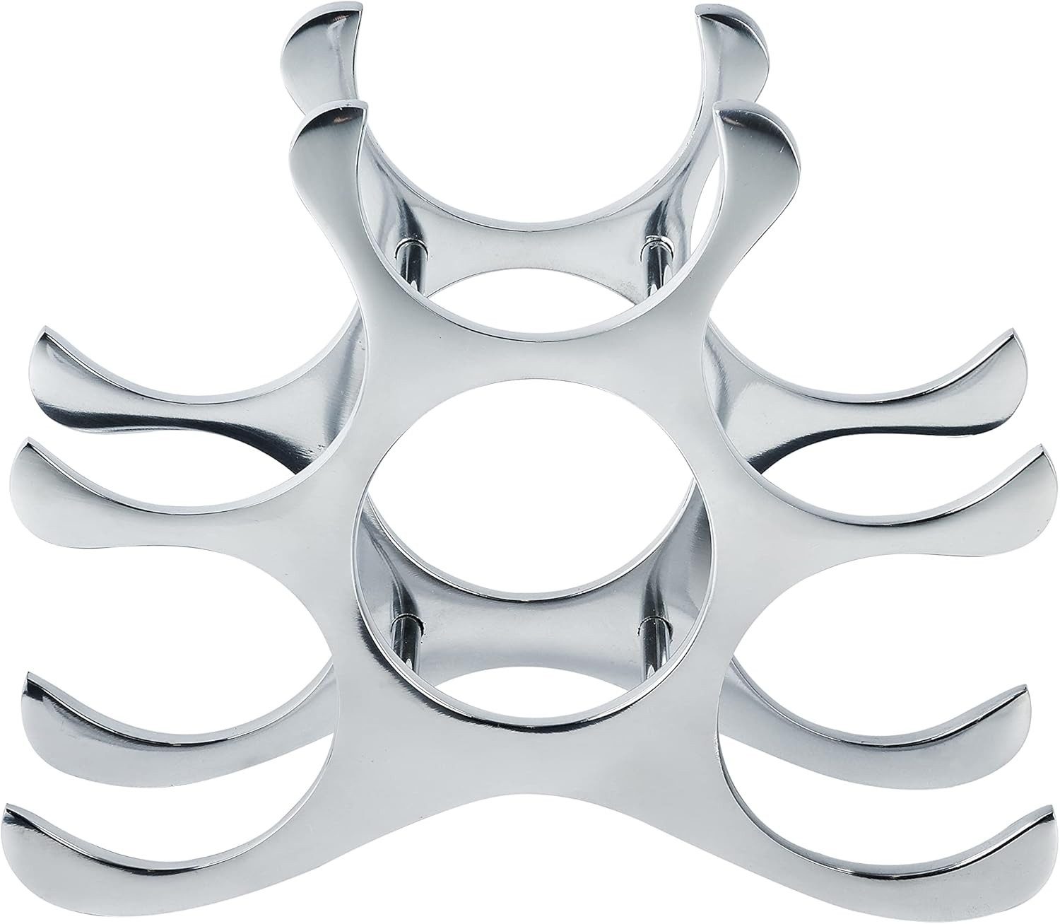 Dieses wunderschöne Flaschenregal hat Platz für bis zu 6 Flaschen deiner Lieblingsweine. Das Regal ist nicht nur eine praktische Aufbewahrungsmöglichkeit für deine Weine, sondern auch ein Design-Objekt der Extraklasse. Der absolute Hingucker für deine vier Wände, oder auch in der Gastronomie. Gefertigt wurde das Weinregal aus hochwertigem und massivem Aluminium, was es extrem langlebig macht. Die Farbe Silber lässt das Flaschenregal sehr edel wirken. Das Weinregal kann bestens in einem Regal, auf einer Anrichte, oder auch auf dem Boden positioniert werden. Jedes der Weinregale wurde aus massivem Aluminium von Hand gegossen und in liebevoller Feinarbeit geschliffen und poliert. Die Lieferung des Weinregals erfolgt exklusive Dekoration.