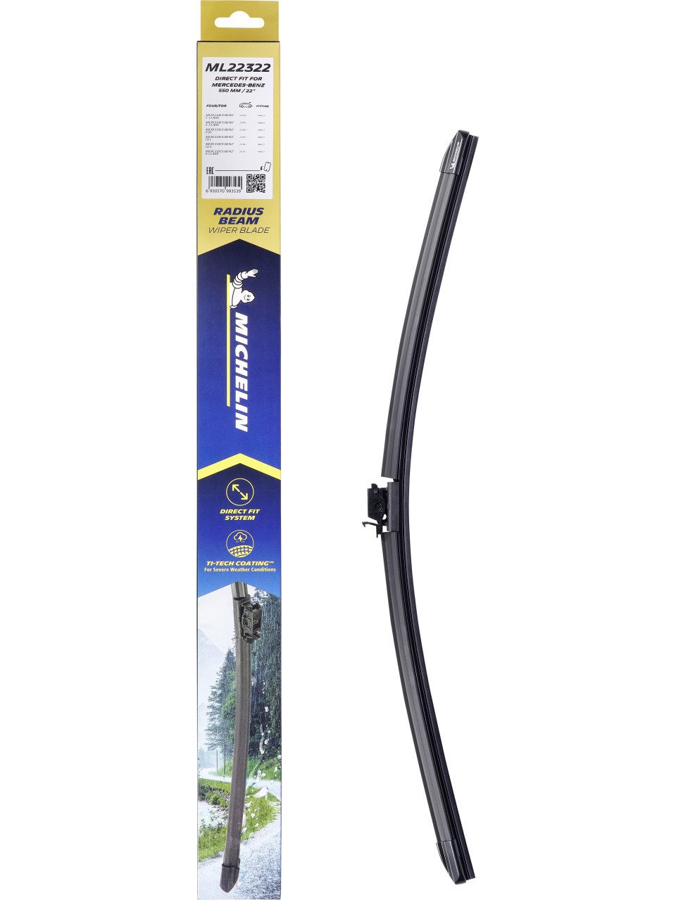 Sehen Sie den deutlichen Unterschied mit Michelin Radius Mercedes Beam Blades. Direct-Fit Steckersystem mit neuem passendem vormontierten Adapter speziell für Mercedes Benz Fahrzeuge. Erleben Sie Präzisionstechnik und fortschrittliches Klingendesign für bessere Leistung und kompromisslose Haltbarkeit. Das Michelin Radiusbalkenblatt bietet modernste rahmenlose Klingenleistung, die die gleichen Qualitätsstandards wie die originalen Scheibenwischer in Ihrem Fahrzeug erfüllen.Metallverzahnung: Gebogene Metallverzahnung für optimierten Kontakt und beste Wischleistung.TI-TECH Beschichtung: Bei extremen Wetterbedingungen proprietäre Gummibeschichtung für optimale Wischeffizienz und verbesserte Haltbarkeit bei widrigen Wetterbedingungen.Aerodynamischer Endclip: Reduziert den Luftwiderstand auf der Windschutzscheibe und sorgt für ein sanftes, leises Wischen.