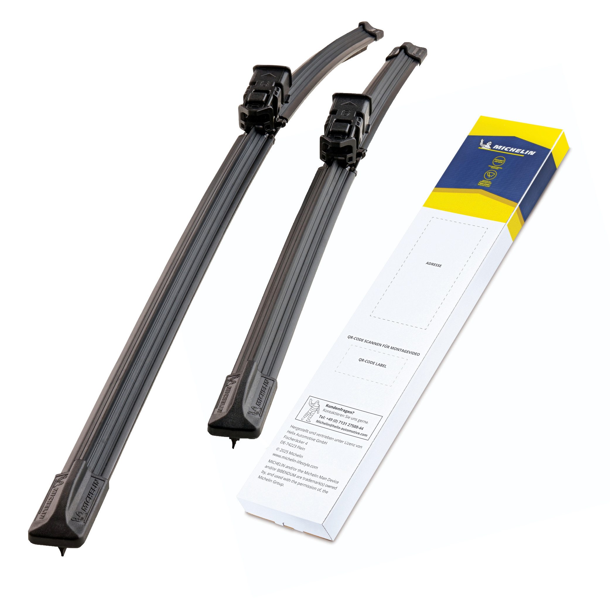 GELENKFREIER SCHEIBENWISCHERSATZ: Die MICHELIN Front Wischblätter sind in Erstausrüsterqualität. Sie wischen perfekt bei jedem Wetter und sorgen für den richtigen Durchblick, wenn Sie Ihn am dringendsten brauchen.