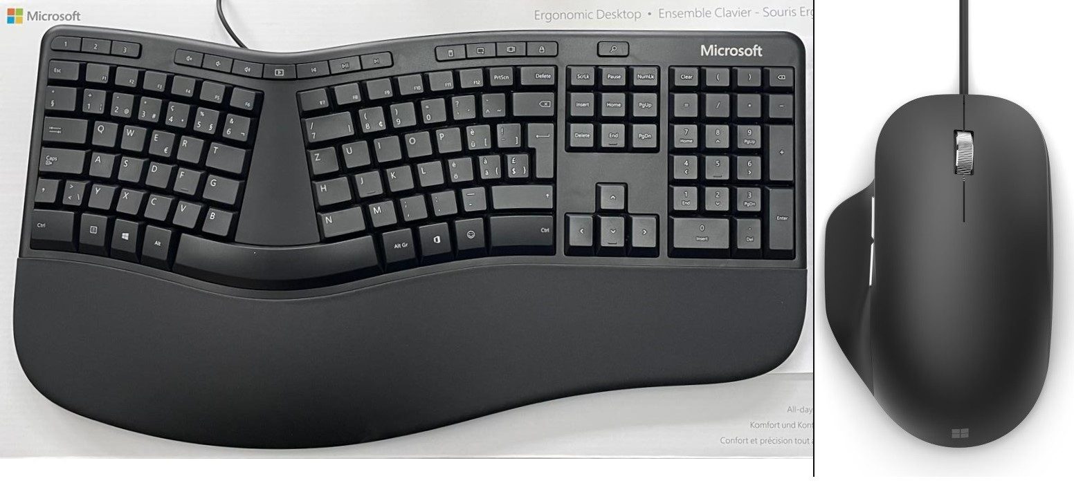 Microsoft Ergonomic Desktop -Ergonomisches Tastatur-/Maus-Set und Handballenauflage mit USB-Anschluss