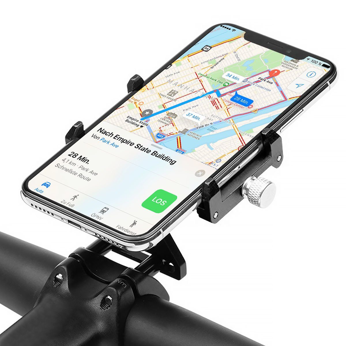 ROBUSTE ALUMINIUMKONSTRUKTION — Unsere Handyhalterung aus hochwertigem Aluminium garantiert eine extrem stabile Befestigung Ihres Smartphones. Dank der robusten Materialwahl und präzisen Verarbeitung bleibt Ihr Gerät selbst bei starken Erschütterungen sicher fixiert. Ein Herunterfallen des Smartphones ist somit nahezu ausgeschlossen, was für zusätzliche Sicherheit und Ruhe sorgt, egal wie holprig die Fahrt ist.