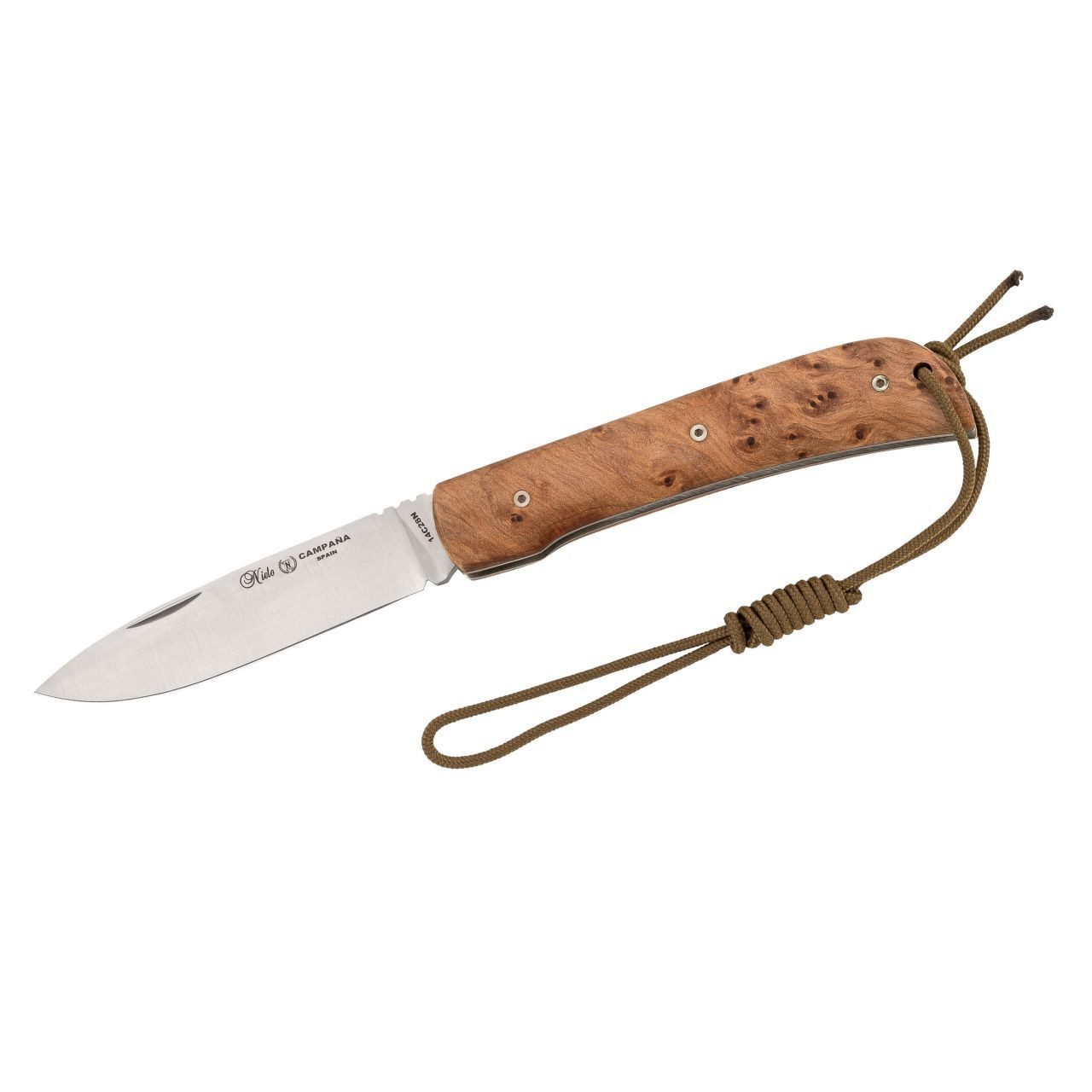 Ein kräftiges und dennoch elegantes, klassisches Taschenmesser aus dem Hause Nieto. Die 3 mm starke Klinge aus rostfreiem 14C28N Stahl wird über einen Nagelhau geöffnet. Die mit Filework verzierte Rückenfeder hält die Klinge zuverlässig in Arbeitsposition. Als Griffmaterial kommt schön gemasertes Thuja Holz zum Einsatz, welches sich durch einen lang anhaltenden, angenehmen Duft auszeichnet.