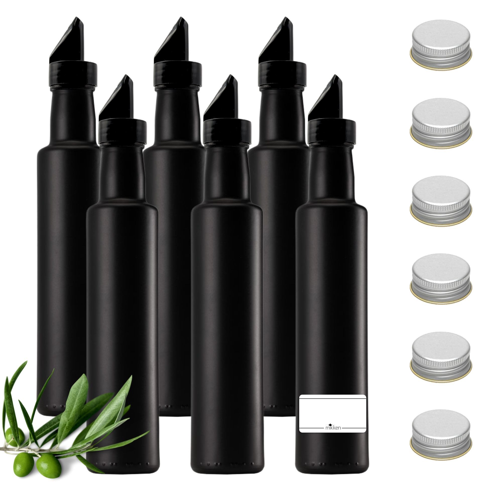 Das 6er-Set Ölflaschen von mikken bietet Ihnen eine praktische und stilvolle Lösung für die Aufbewahrung und das Dosieren von Öl, Essig, Dressing oder anderen Flüssigkeiten. Die matt schwarz beschichteten Glasflaschen sind nicht nur ein Blickfang in jeder Küche, sondern schützen dank ihrer dunklen Oberfläche auch vor Licht – ideal für lichtempfindliche Öle und Flüssigkeiten.