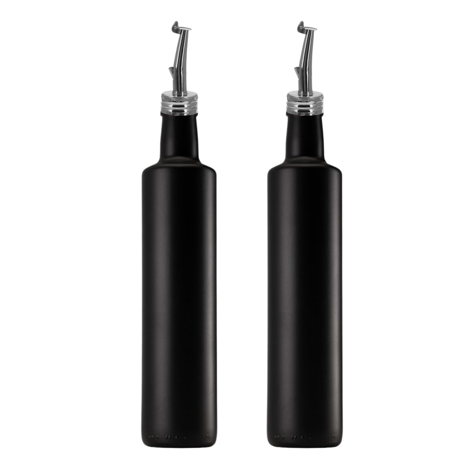 Die mikken Ölflasche 500 ml in matt-schwarz ist die ideale Lösung zur Aufbewahrung von hochwertigen, lichtempfindlichen Flüssigkeiten wie Olivenöl oder Essig. Dieses Set aus zwei Flaschen kombiniert modernes Design mit durchdachter Funktionalität und sorgt für eine elegante Optik in jeder Küche.
