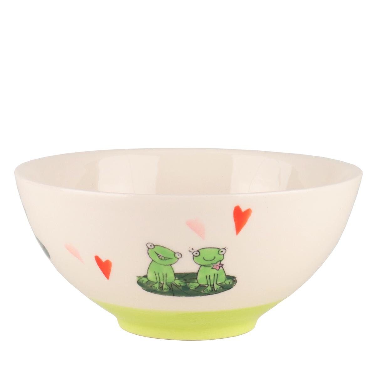 Mila Keramik-Schale Love is in the Air Von den ulkigen Frosch-Tapsen bis hin zur großen Liebe hat alles Platz in der liebevoll von Hand kolorierten Müsli- und Snack-Schale von Mila. Material: lebensmittelechte Keramik in höchster Qualitätsstufe, von Hand bemalt, fair produziert aus ISO zertifiziertem Betrieb Maße: ca. 7,5 cm x 15,5 cm (HxD) Füllmenge: ca. 600 ml Hinweis: Die Schale ist spülmaschinenfest. Die Keramik-Schale ist handbemalt, geringe Abweichungen vom Bild sind daher Ausdruck individueller Handwerks-Kunst. Dieses Angebot gilt für ein Stück Mila Keramik-Schale, Motiv: Love is in the Air, Artikel MI-85273, OHNE Deko oder sonstigem Zubehör.