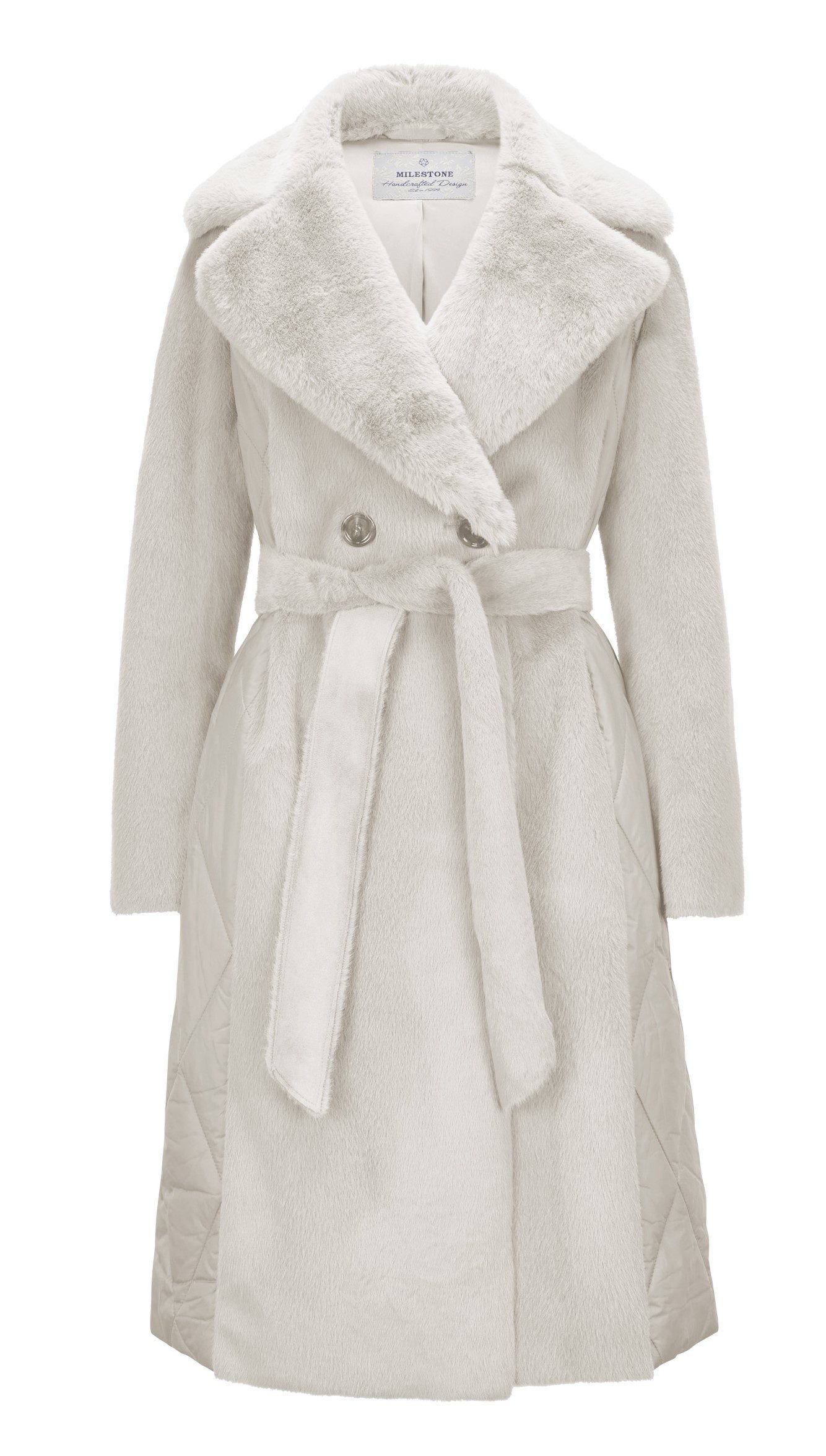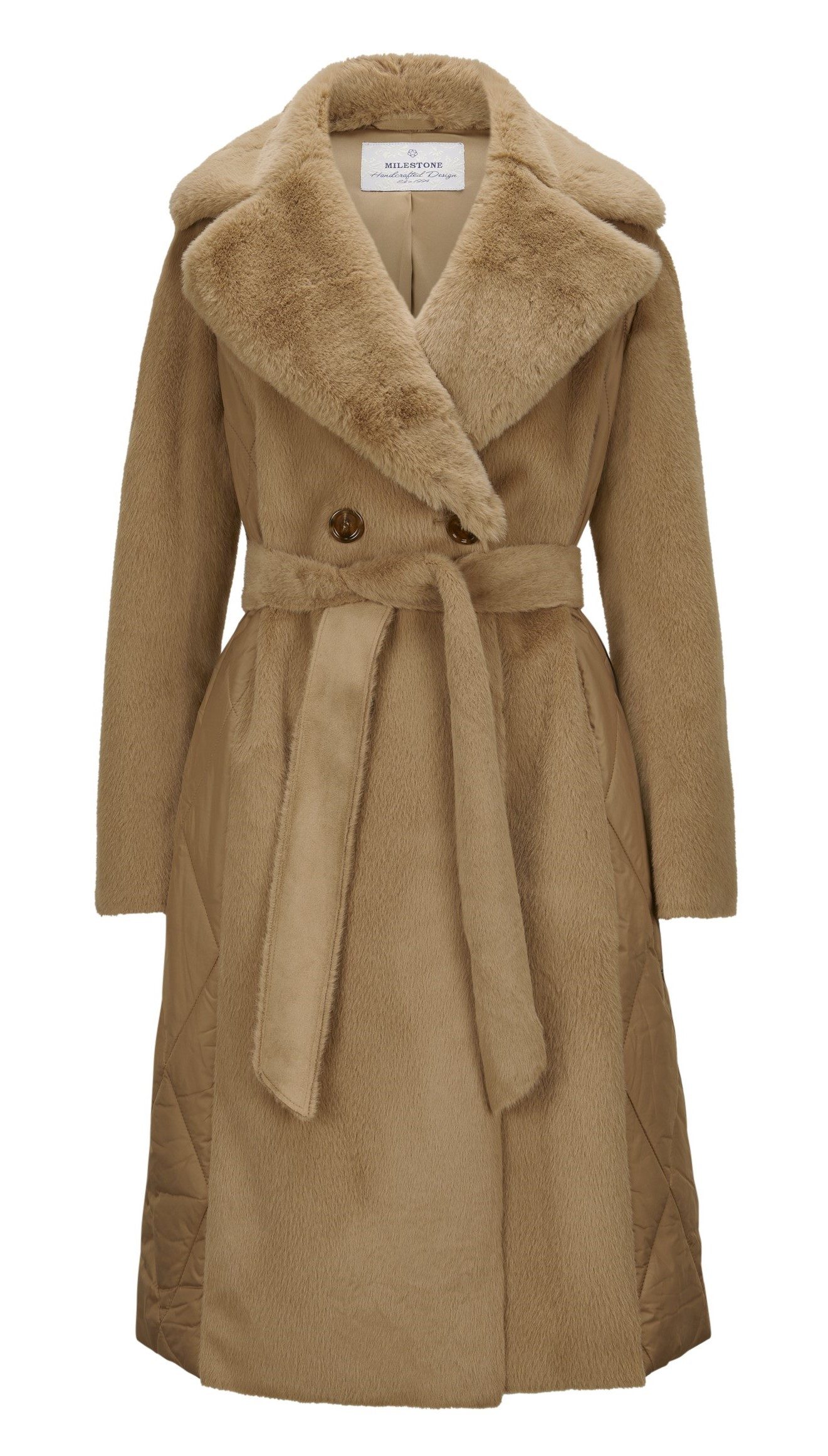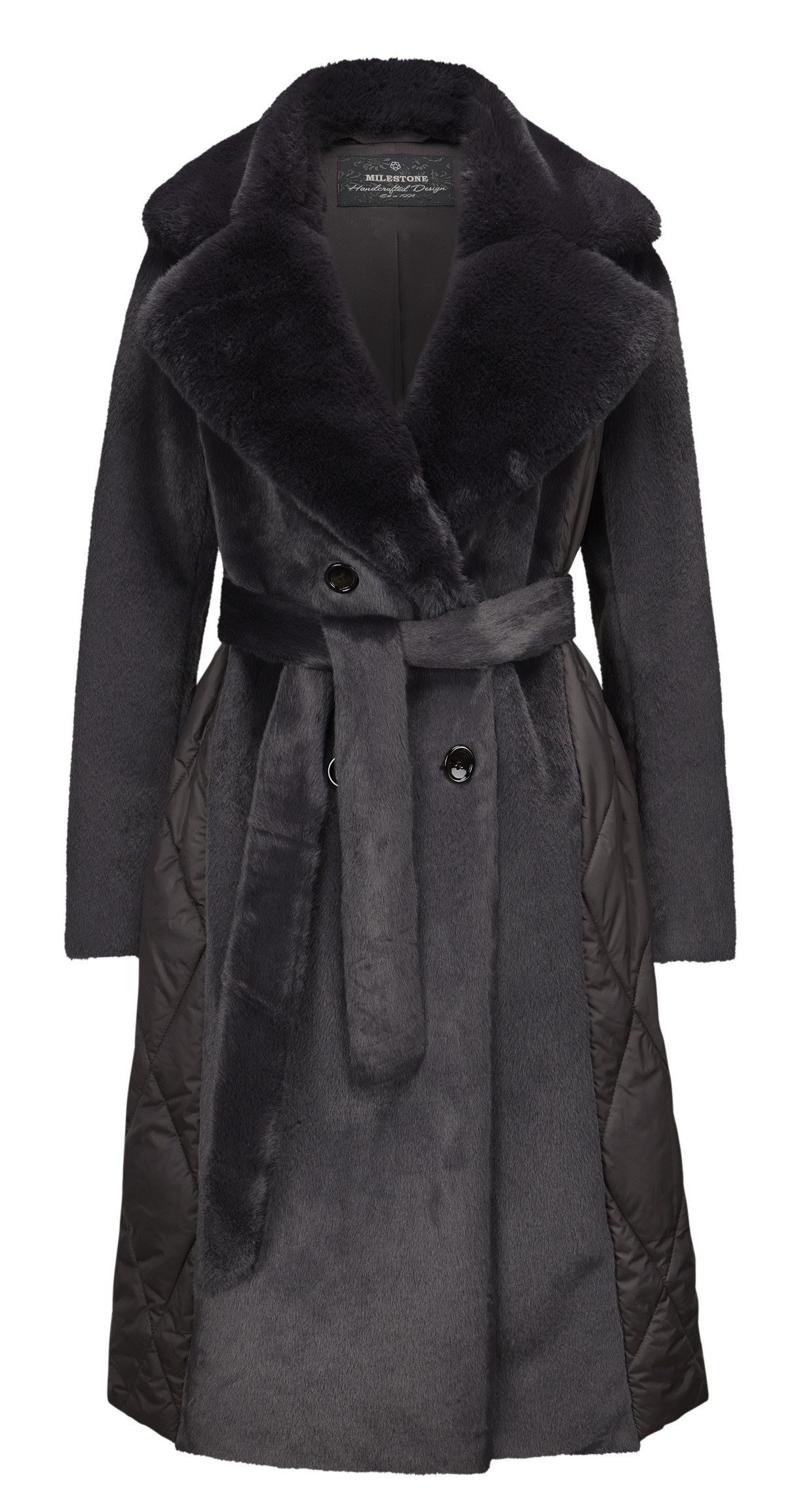 Besondere Merkmale | 2-reihiger Mantel aus Kunstpelz-Stepp-Mix im Trench-Look |