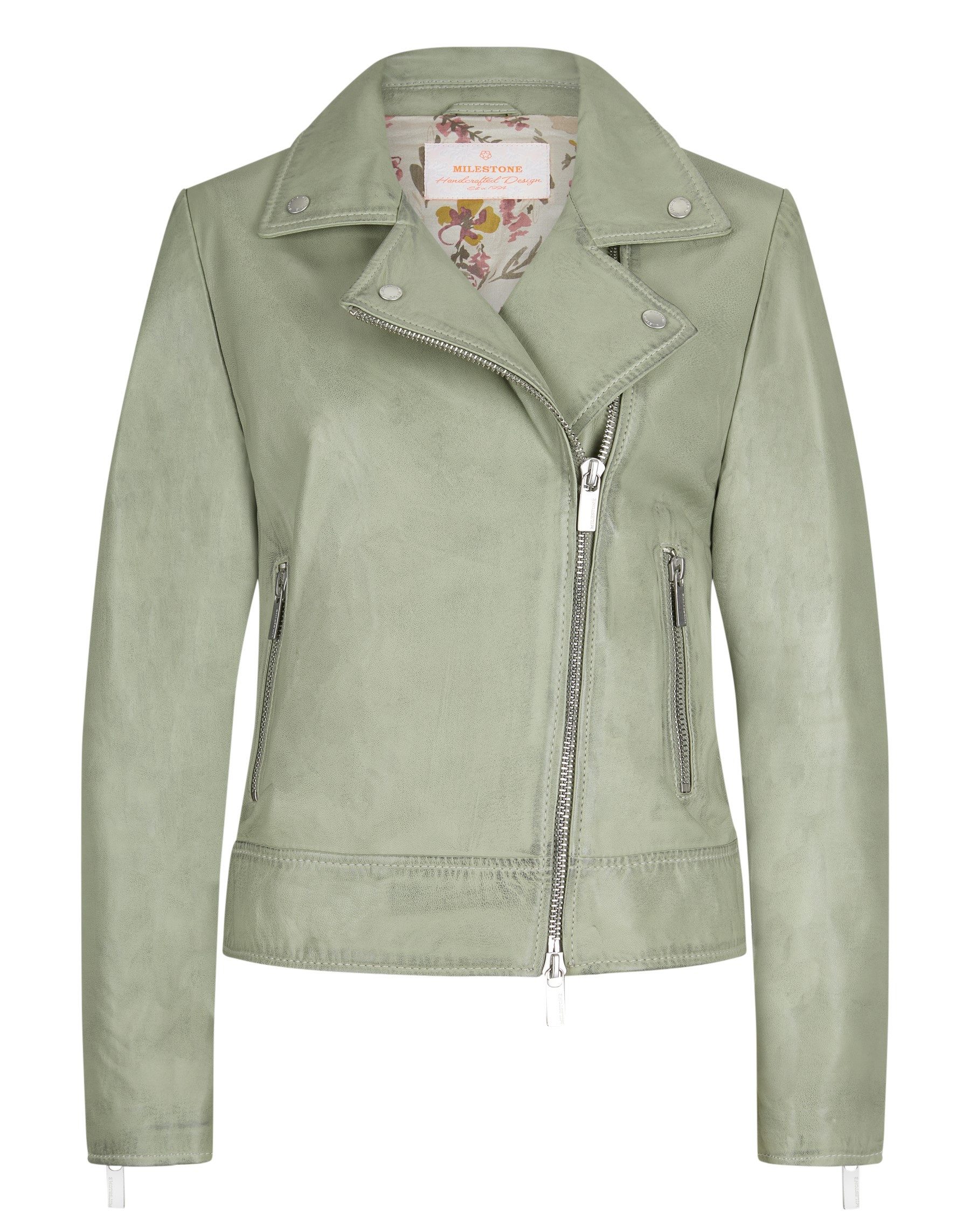 Sie sind auf der Suche nach einer Lederjacke, die Eleganz und lockere Streetwear miteinander verbindet? Dann sind Sie jetzt fündig geworden. Mit dem Modell MSDanja von MILESTONE erhalten Sie das neue Lieblingsstück, die Ihre Garderobe bereichert. Egal ob Sie die Jacke mit einem Rock, einer Jeans oder aber Sommerkleid kombinieren, Sie treffen hiermit immer die richtige Wahl. Passend für das Frühjahr/ Sommer