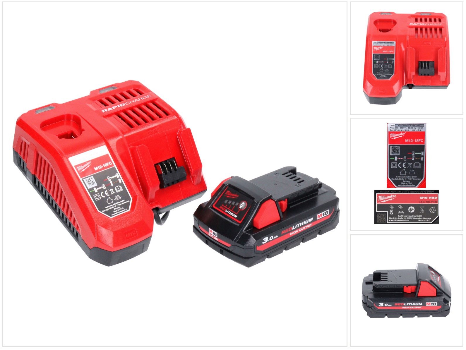- 1x Milwaukee M18 HB3 High Output 18 V 3,0 Ah / 3000 mAh Li-Ion Akku ( 4932471069 ) mit Ladestandsanzeige