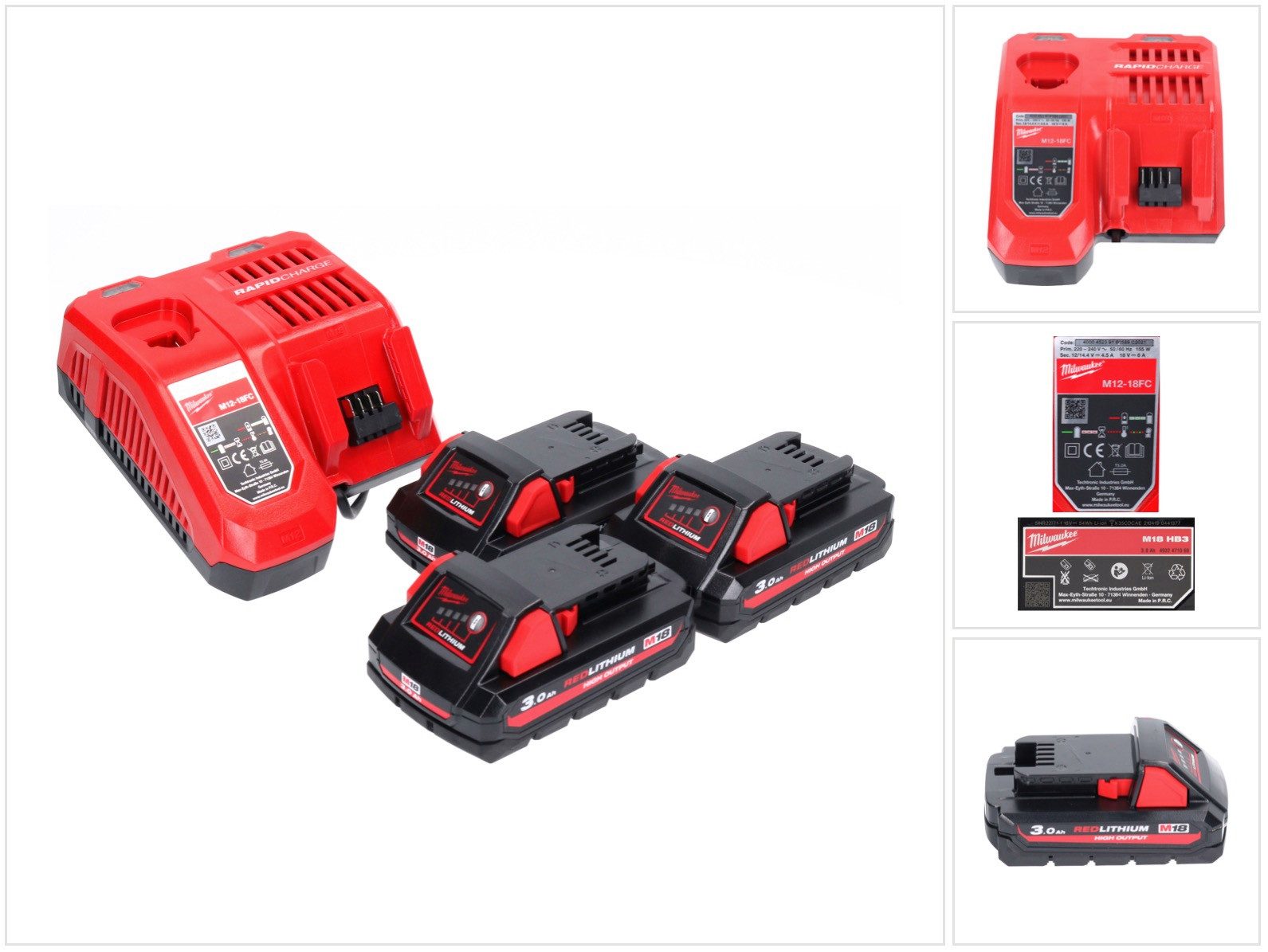 - 3x Milwaukee M18 HB3 High Output 18 V 3,0 Ah / 3000 mAh Li-Ion Akku ( 4932471069 ) mit Ladestandsanzeige