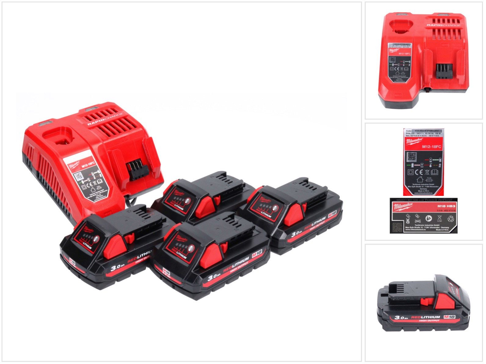 - 4x Milwaukee M18 HB3 High Output 18 V 3,0 Ah / 3000 mAh Li-Ion Akku ( 4932471069 ) mit Ladestandsanzeige