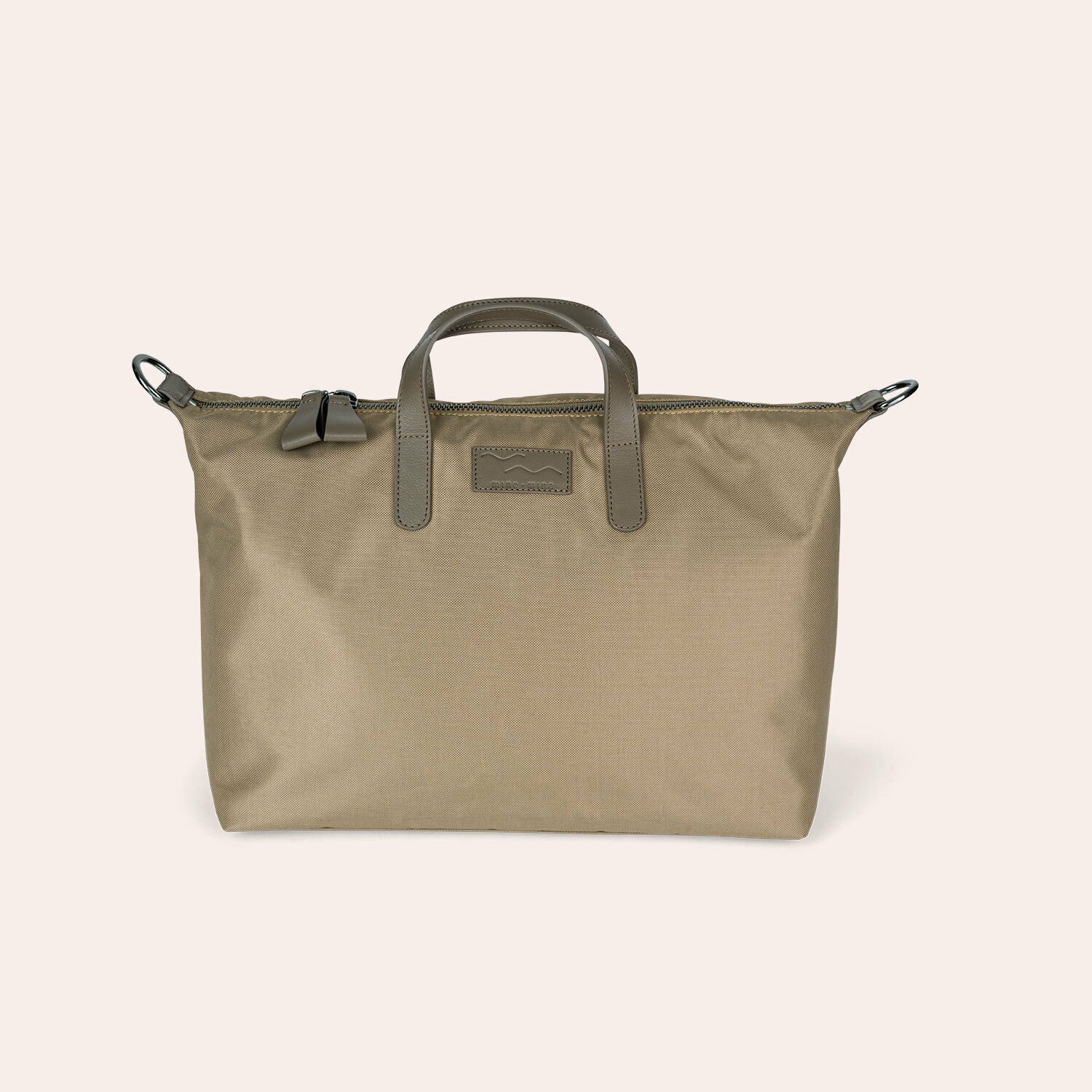 Ein klarer Kopf verlangt nach klarer Struktur, völlig egal ob berufsbedingt oder im Familienalltag â so zumindest das Motto von unserer Insert Bag MINA. Hier hat alles seinen Platz.Das Beste: mit zwei Handriemen aus Leder lässt sich MINA auch mal eben schnell solo mitnehmen oder in eine andere Tasche umsetzen. Morgens Meeting, nachmittags Spielplatz? MINA ist dabei. Ganz unaufgeregt, ganz stilsicher und in gewohnter mine mina Premiumqualität.In der Innentasche findest du einen Lederriemen mit Karabiner, um eine kleinere Tasche oder deinen Schlüssel zu befestigen. - Gewicht: 770 g- Abmessungen: 42,5 x 17 x 28,5 cm- Länge Handriemen: 24 cm- Länge Schulterriemen: 71 - 125 cm- geprägtes Logo- AuÃen: wasserabweisendes Nylon und genarbtes Rindsleder- Innen: Baumwolle- abnehmbarer, längenverstellbarer Schulterriemen- Handriemen- herausnehmbarer Lederriemen mit Karabiner- Hauptfach mit ReiÃverschluss- gepolstertes Notebookfach mit Druckknopf- Innenfach mit ReiÃverschluss- vier gröÃere Steckfächer- einfache Handhabung- "Tasche in der Tasche" mit dem Modell möglich