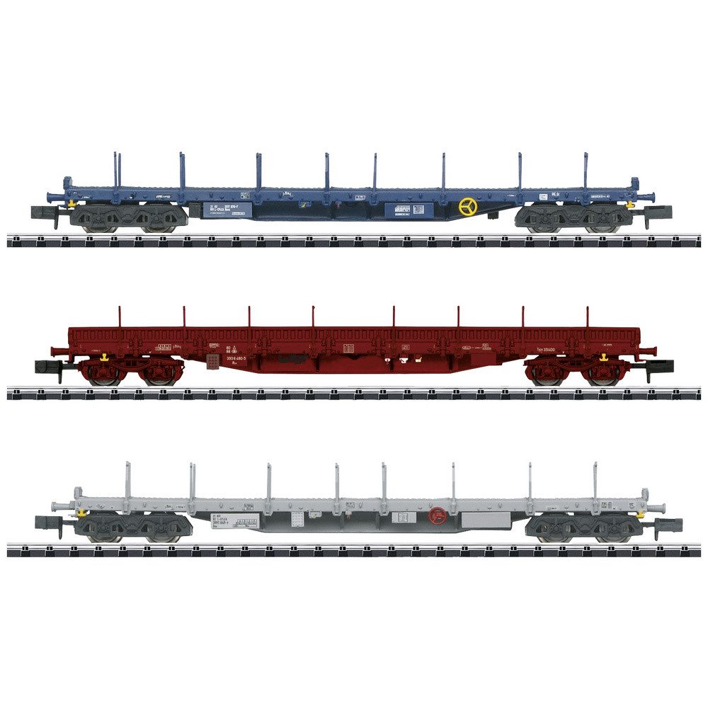 Vorbild: 3 vierachsige Flachwagen mit Rungen der Bauart Rnss der CFL. 1 Rungenwagen der Bauart Res der SNCB, B-Cargo. 1 Rungenwagen der Bauart Rns der CFL, angemietet bei AAE.