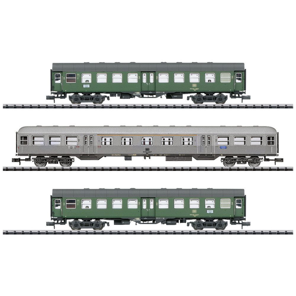 Modell: Все Wagen mit Kinematik für Kurzkupplung, vorbereitet für den nachträglichen Einbau einer Innenbeleuchtung.Gesamtlänge über Puffer 409 mm. Die dazu passende Innenbeleuchtung:1x 66616 LED-Innenbeleuchtung.2x 66638 LED-Innenbeleuchtung. Einen kompletten Zug erhalten Sie mit dem Ergänzungswagen-Set 18296 und der Dampflokomotive Baureihe 001 mit der Artikelnummer 16017