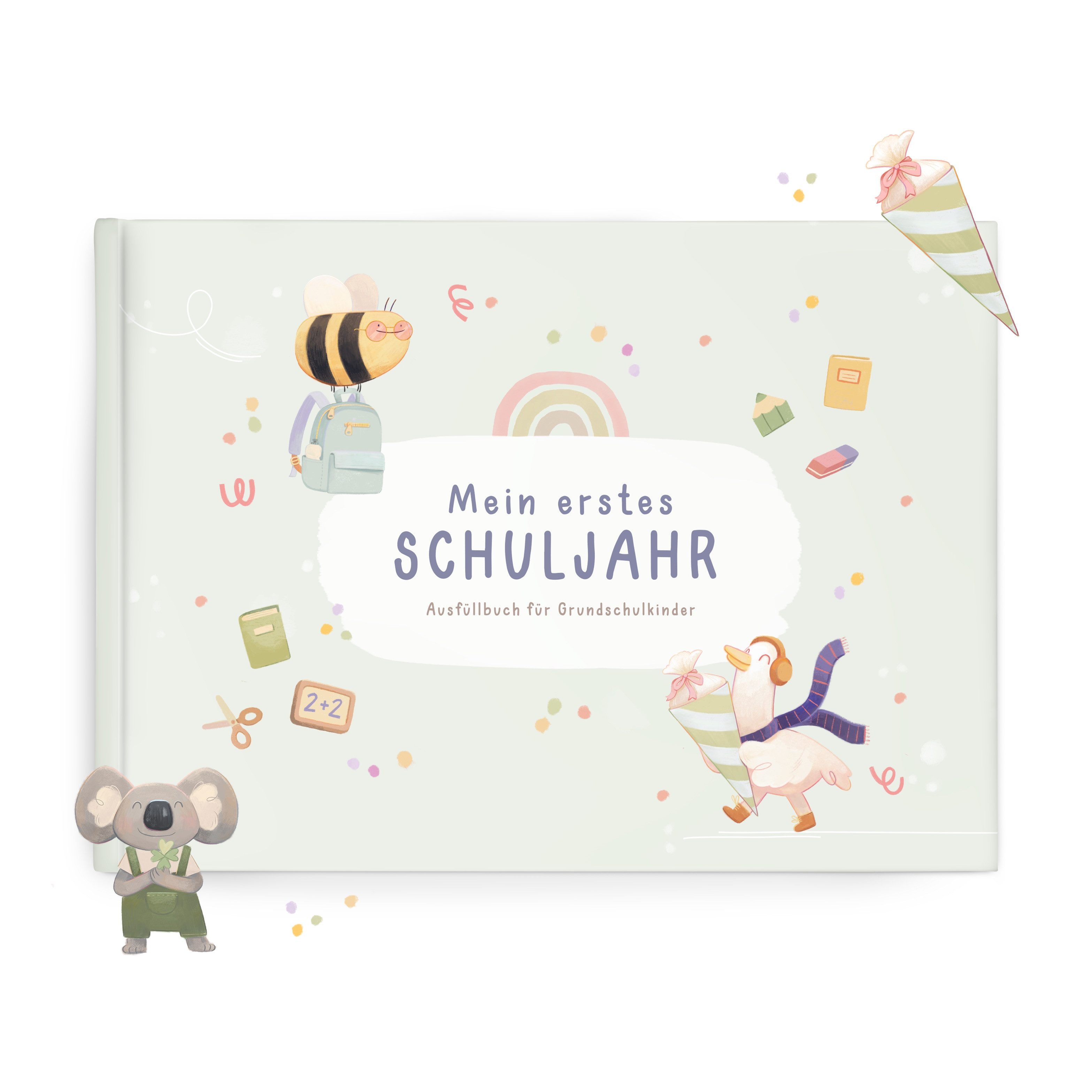 Erinnerungsbuch für das erste Schuljahr – begleitet Kinder mit Fragen, Spielen & Platz für Gedanken – perfekt für jede Erinnerungskiste