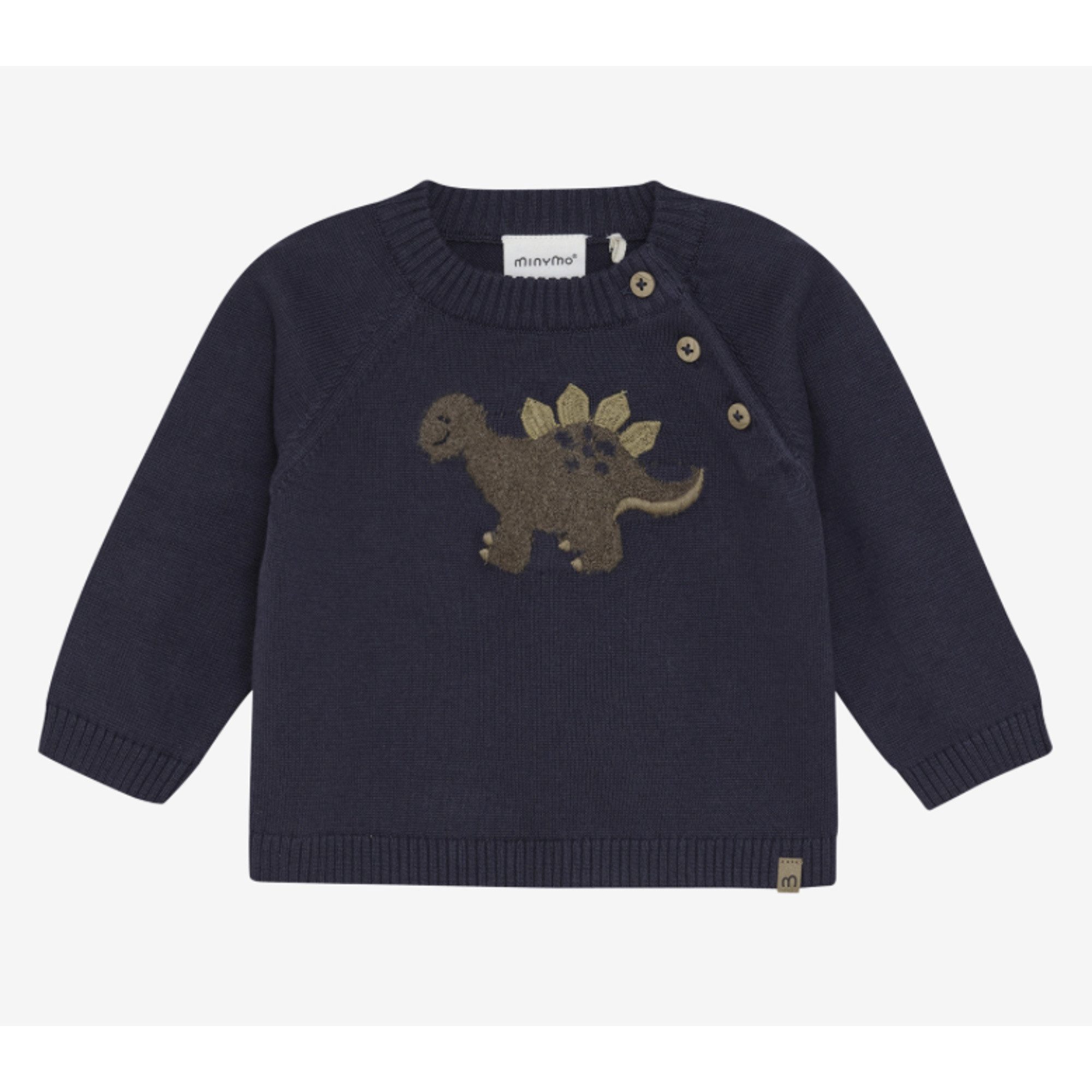 Baby-Strickpullover in Dunkelblau mit Dinosaurier-Motiv