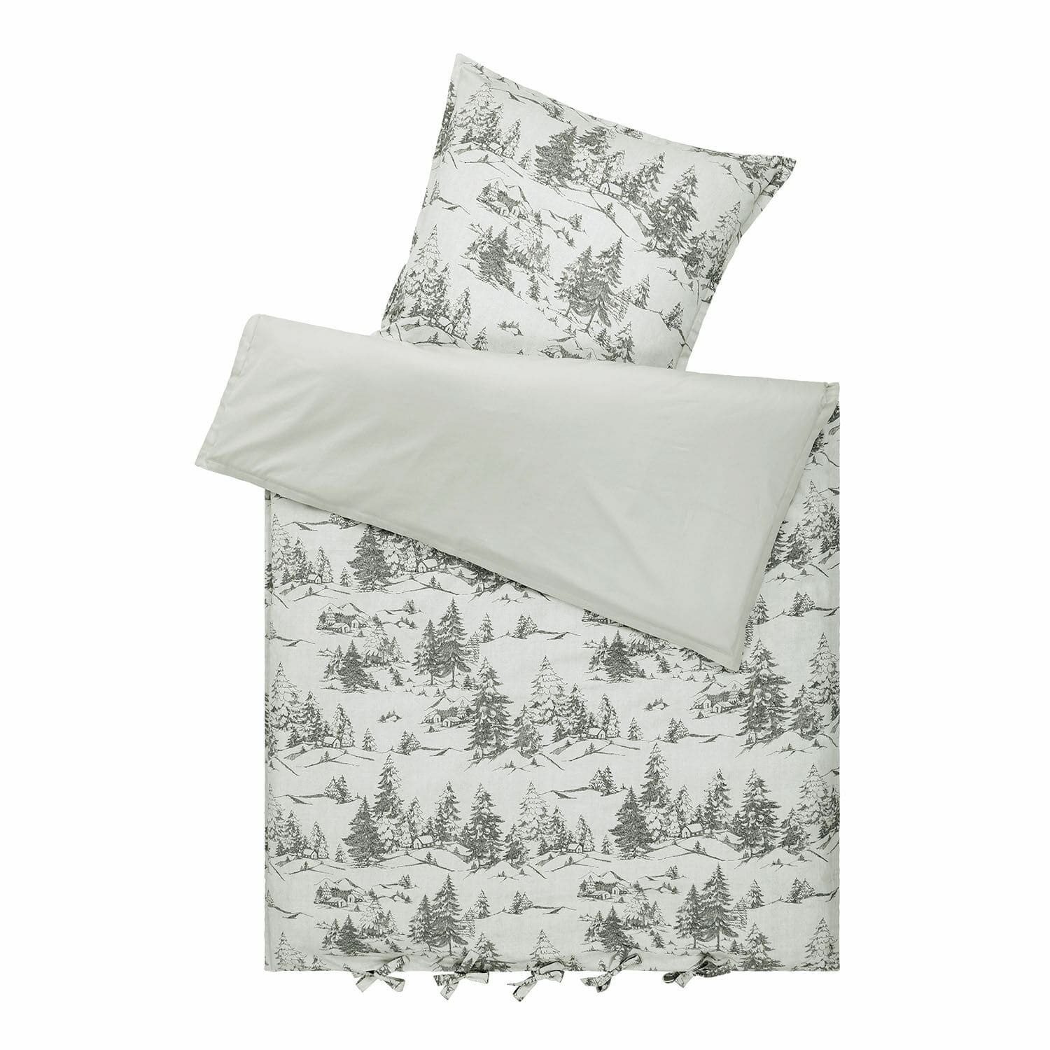 Aus 100% Baumwolle ist sie besonders hautfreundlich und atmungsaktiv. Das Winterlandschafts-Muster verbreitet eine friedliche Atmosphäre. Mit praktischen Bindebändern. Diese wunderschöne Bettwäsche aus reiner Baumwolle bringt eine gemütliche Winterlandschaft in Ihr Schlafzimmer. Mit ihrem detaillierten, grauen Muster von schneebedeckten Bäumen und kleinen Hütten auf cremefarbenem Hintergrund verbreitet sie eine ruhige und friedliche Atmosphäre. Der praktische Verschluss mit Bindebändern sorgt dafür, dass die Bettdecke sicher an ihrem Platz bleibt und nicht verrutscht.