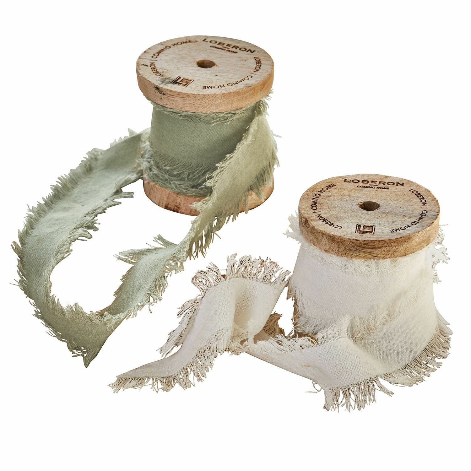 Zwei Baumwollbänder mit dekorativen Fransen. Jeweils 10 m Длина und 4 cm Breite für vielseitige Anwendungen. Auf praktischen Mangoholzspulen aufgerollt. Dieses charmante 2er Set aus Baumwollbändern verleiht jedem Geschenk und Dekorationsprojekt eine besondere Note. Auf einer handlichen Mangoholzspule aufgerollt, bieten die Bänder mit ihren dekorativen Fransen eine perfekte Длина von jeweils 10 Metern und einer Breite von 4 cm. Die sanften Naturtöne und die hochwertige Baumwollstruktur machen diese Bänder zu einem idealen Begleiter für kreative DIY-Ideen.