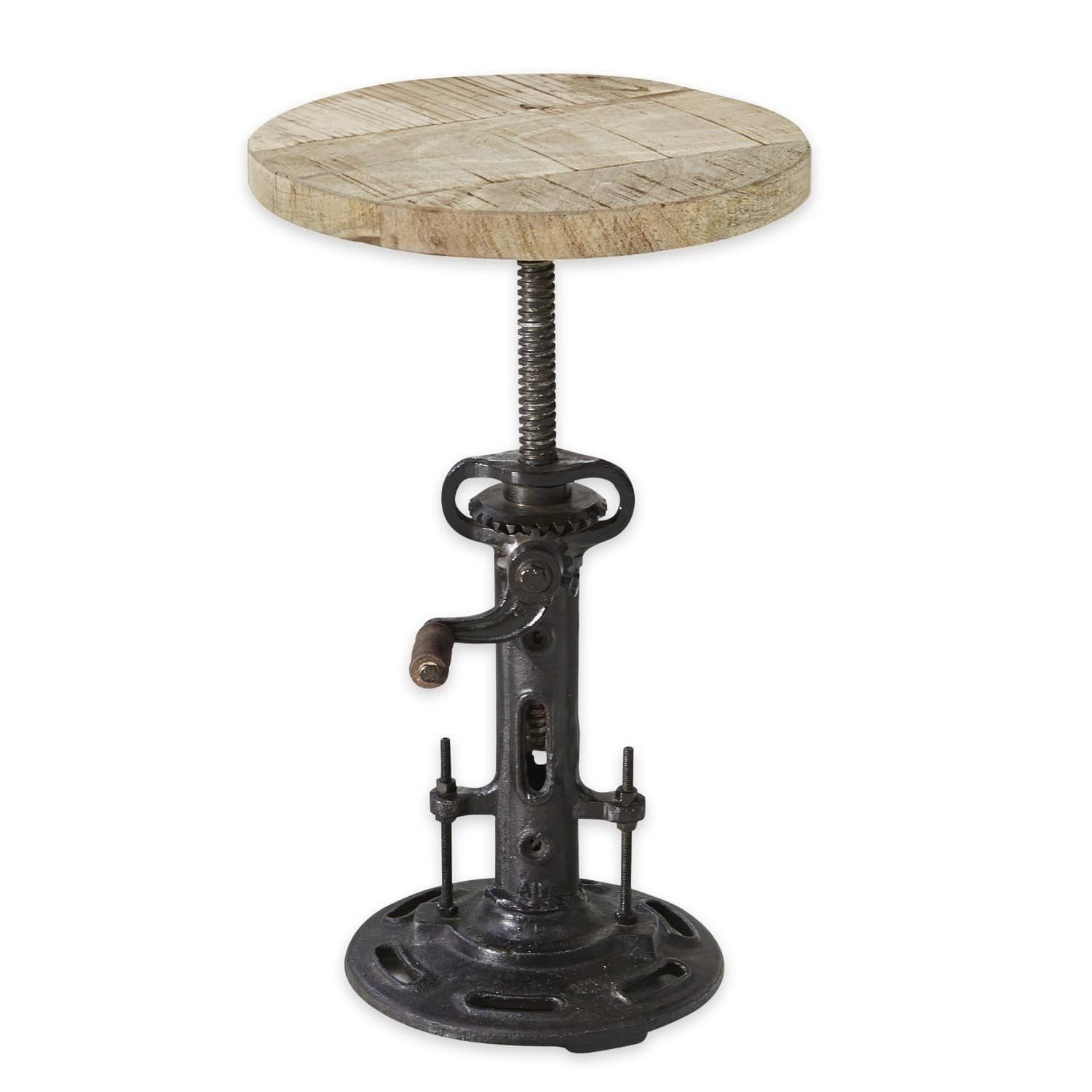 Aus Gusseisen und Mangoholz wurde dieses schöne Stück gefertigt. Es überzeugt mit seinem stilechten Industrial-Look und einer guten Prise Vintage-Flair. Wahrlich ein Design wie aus früheren Zeiten, und ein sehr geschmackvoller und gekonnter Kontrast zu modernen Interiors. Dank des verstellbaren Fußes lässt die Höhe sich ganz flexibel regulieren. Somit können sowohl kleine als auch große Personen wunderbar darauf Platz nehmen. Ob als Extraplatz, wenn einmal Besuch kommt, bei Feiern in großer Runde zu Hause oder einfach als kleine Ablage – es lässt sich ausgesprochen vielseitig nutzen. Im Schlafraum kann das Modell als Alternative zum Nachttisch genutzt werden, oder arrangieren Sie Dekoratives wie Bücher oder ein Windlicht obenauf. Im Badezimmer könnten Handtücher darauf abgelegt werden, und in der Küche ist es ein schönes Plätzchen an der Anrichte oder am Küchentisch.